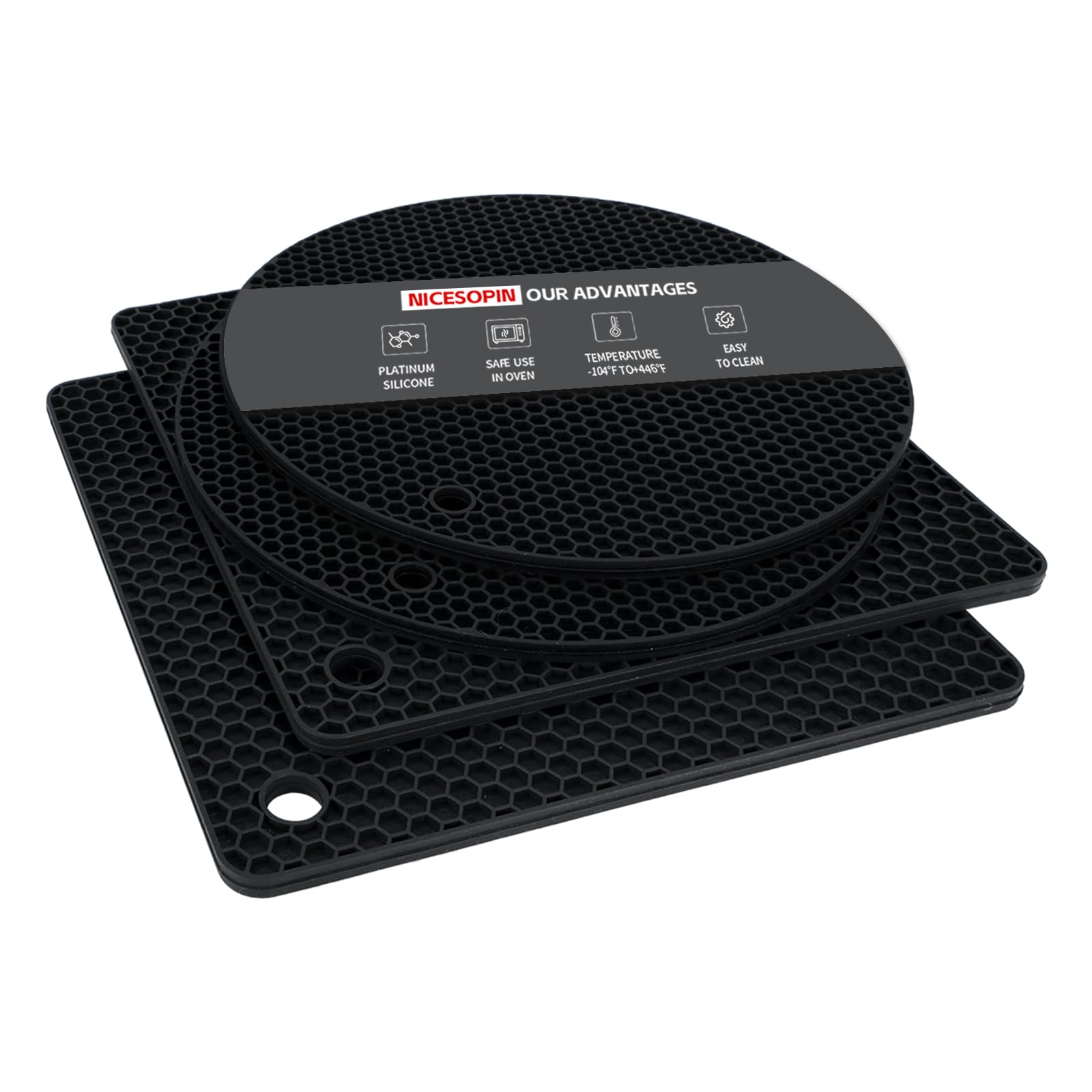 NICESOPIN 4 Pack Silicone Pot Holders & Hot Pads - Heat Resistant Black