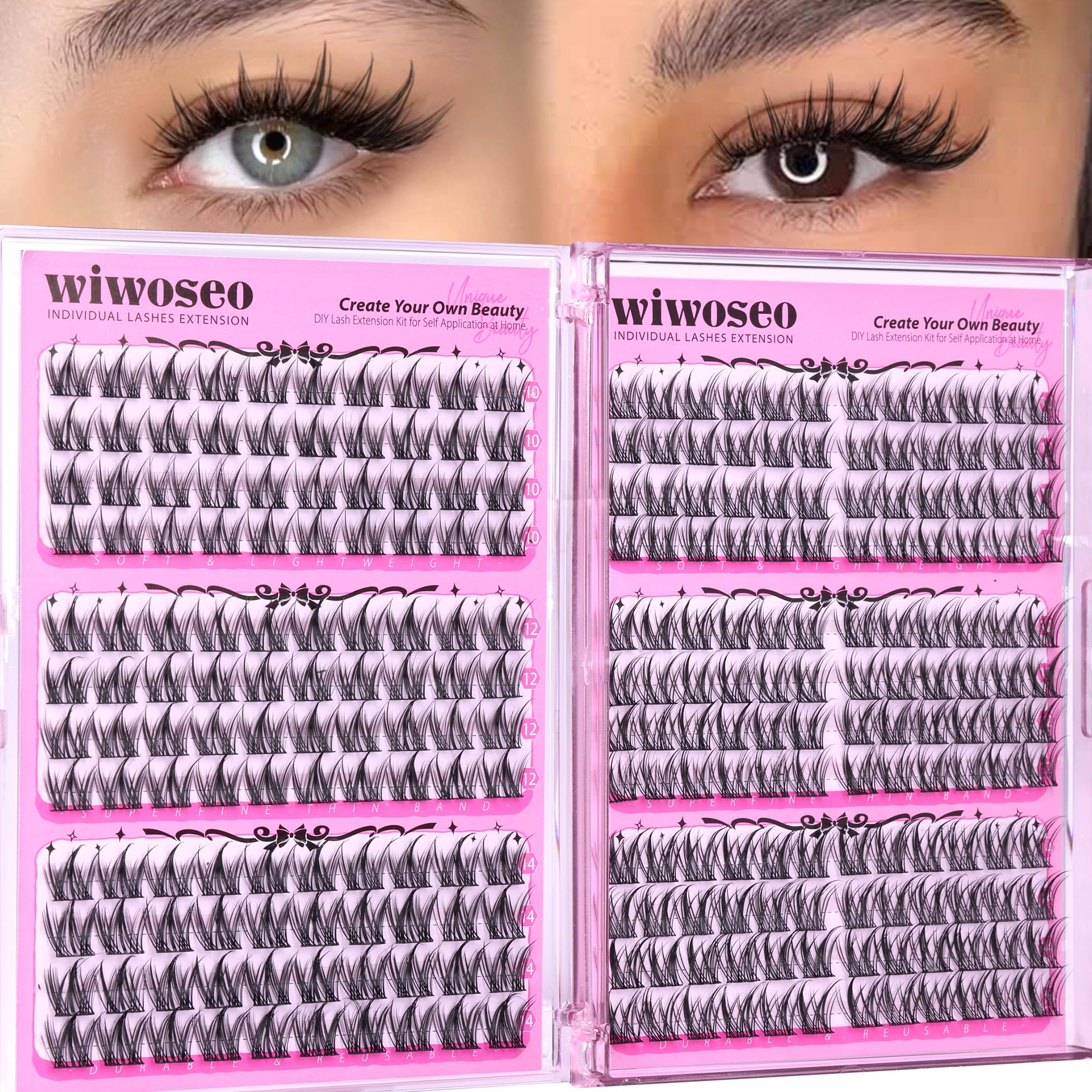 Natural Lash Clusters: wiwoseo cluster lashes are crafted from a professional-grade mink-like fiber material, ensuring they remain soft and resistant to deformation. With their ultra-lightweight design, the thin lash band places no extra burden on your eyes, offering a comfortable wearing experience