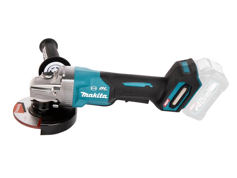 Makita GA013G XGT 40Vmax Angle Grinder with paddle switch. It has a powerful brushless maintenance-free and long-life motor for demanding professional use. The machine features standard electronics, overload protection and AFT-active feedback detection technology. Active Feedback sensing Technology (AFT) stops the engine if the rotation suddenly stops.