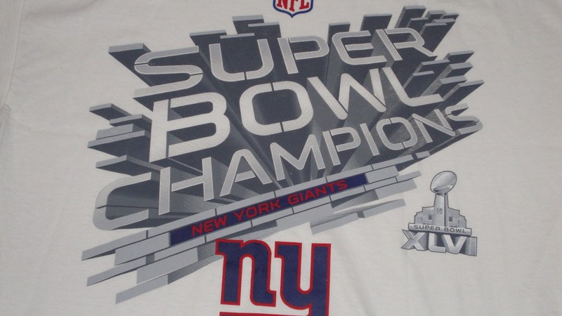Description:.You are bidding on a new with tags Giants t-shirt in adult size XL. The shirt is all white with gray, red and blue writing. The front says "Super Bowl Champions New York Giants" with a "NY" under it. Next to it is the trophy with "Super Bowl XLVI" on it. Above everything is a NFL logo. The shirt says Reebok on the bottom. The shirt is made of 100% cotton. Great for any fan!