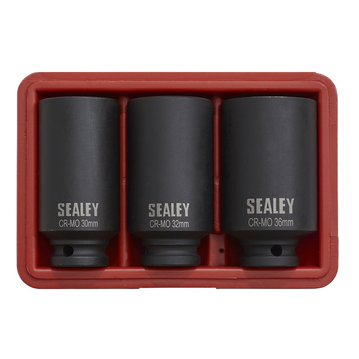 Heavy-duty, high Quality, 12-point, Chrome Molybdenum impact sockets suitable for use with any 1/2"Sq drive impact tool. Blackened finish for added corrosion resistance. Tool suitable for hub nut applications where high torque is required. Supplied in a storage case.