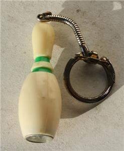 Here is a great vintage Bowling Bowling Pin with Green Rings Plastic with mini compass on bottom Keychain Great Collectible. It is Awesome. It is in great condition-SEE ALL PHOTOS. It measures about 2 1/4 inches tall by about 3/4 inches wide. Grab this great Bowling Advertising Collectible while you still can it will not last long.