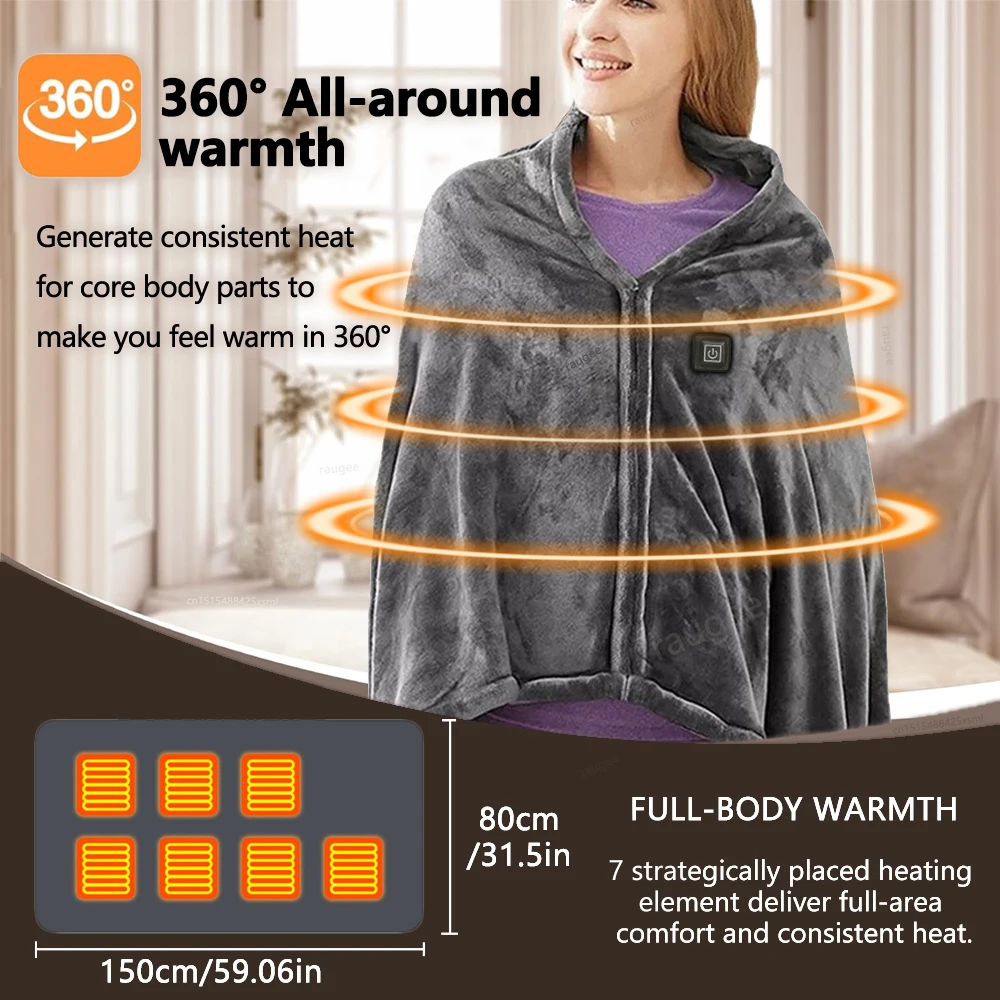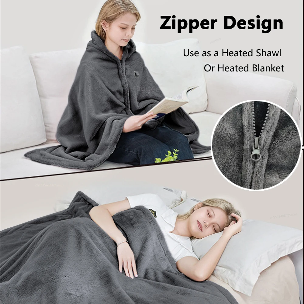 Ultra Fast Heating & Zippered Design:The portable heated blanket is made of updated heating technology and super soft fabric, fast heating in seconds. Our zippered design ensures a snug fit that won't slip off, allowing you to move freely while staying warm.