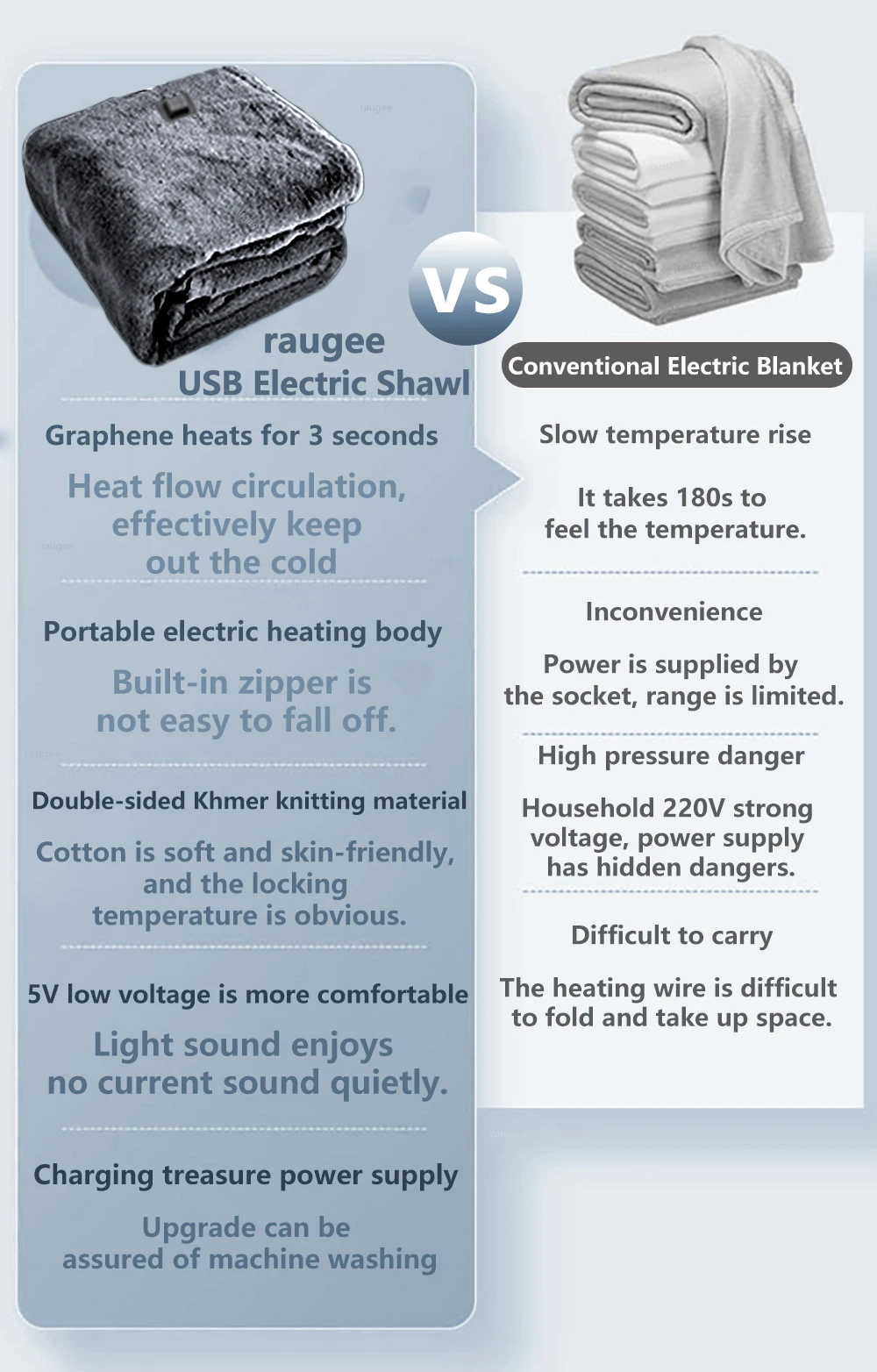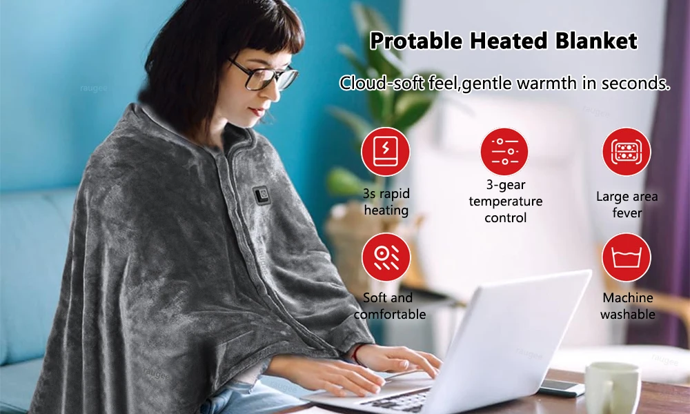 The Best Gift: The best gift in the cold winter is to give warmth and comfort. The raugee USB heated blanket is the best gift for family and friends on Christmas, Thanksgiving, birthdays and anniversaries.