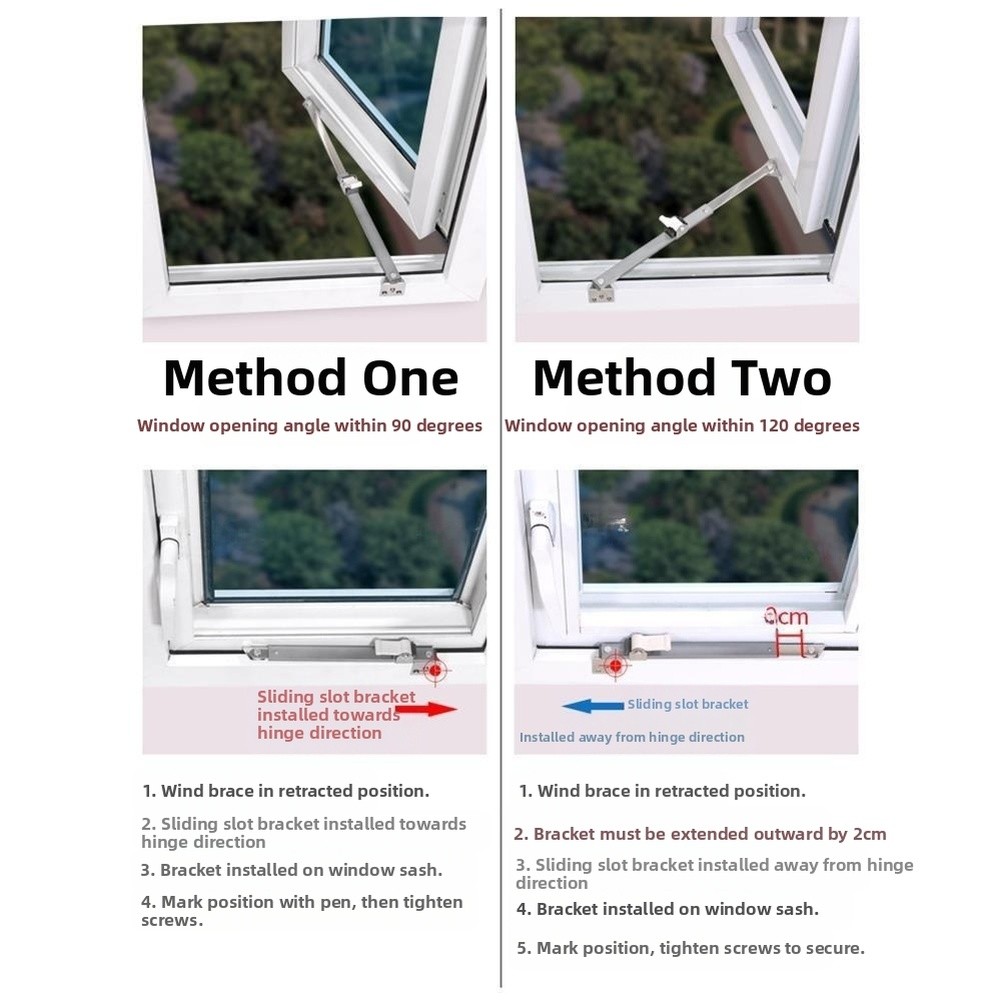 *Adjustable Opening Angle: Enables flexible window positioning up to 120 degrees for optimal airflow control.