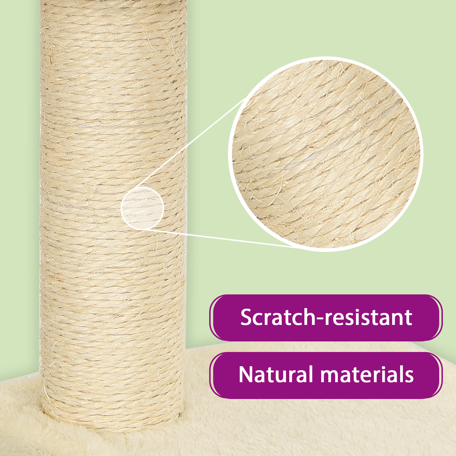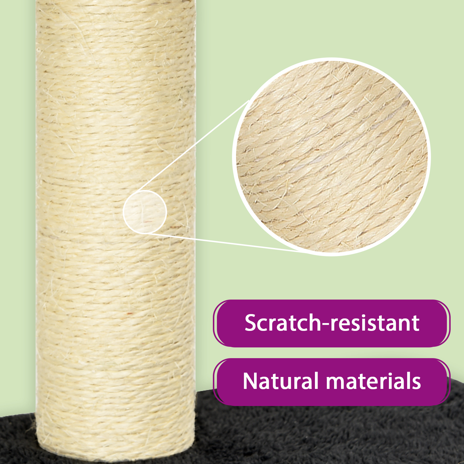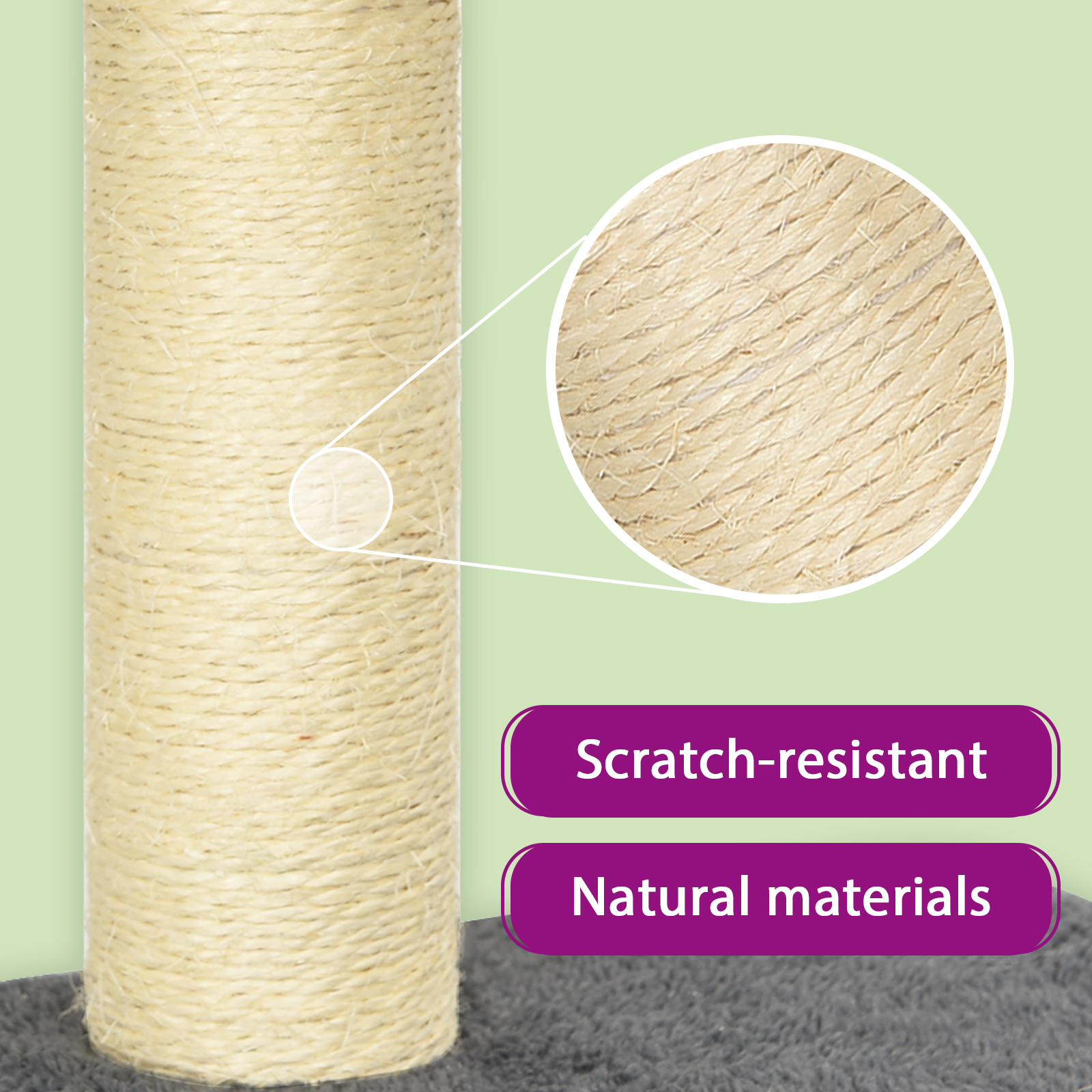 Your furry friends can sharpen their claws on the scratching posts wrapped in sisal rope, which provides a healthy outlet for their scratching instincts. Additionally, they will also rejoice in chasing after each other while jumping up and down this fun play centre. When they've enjoyed enough playtime, your little friends will love resting on the upper platforms where they have a better view. Besides, they can also hide in the cosy house to take a nap, or take a load off on the comfortable plush seat.