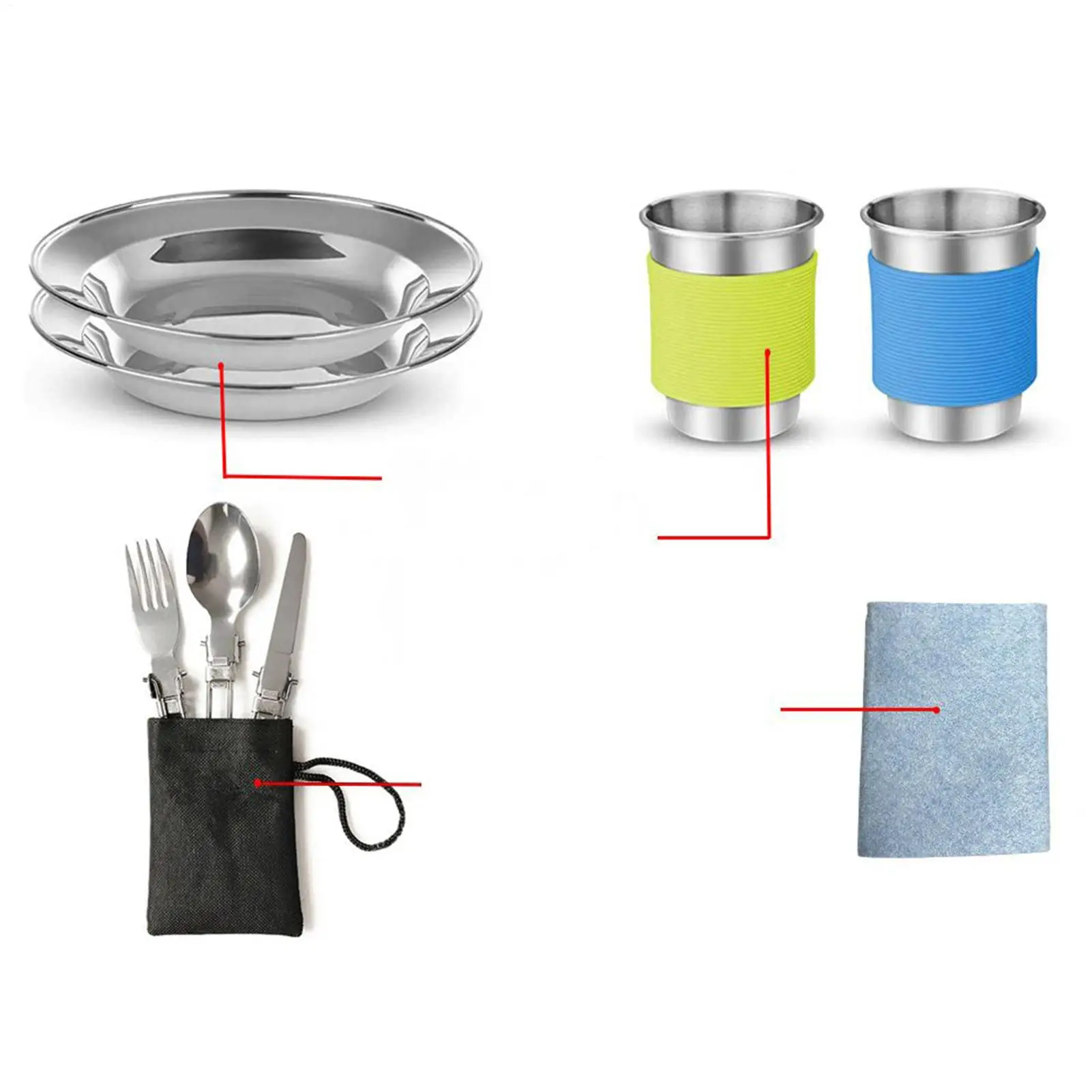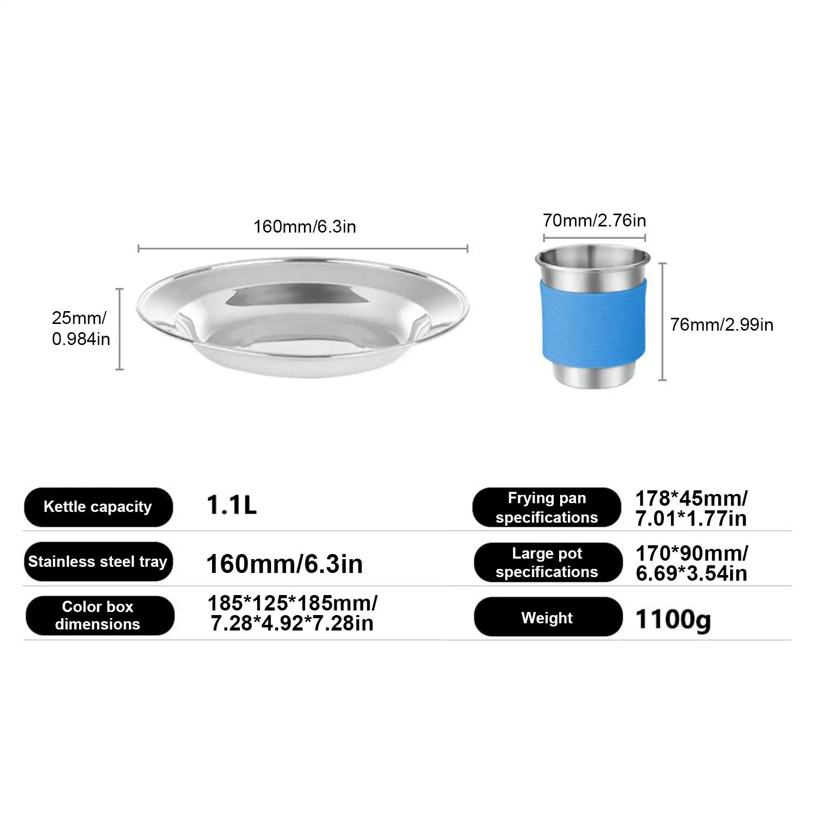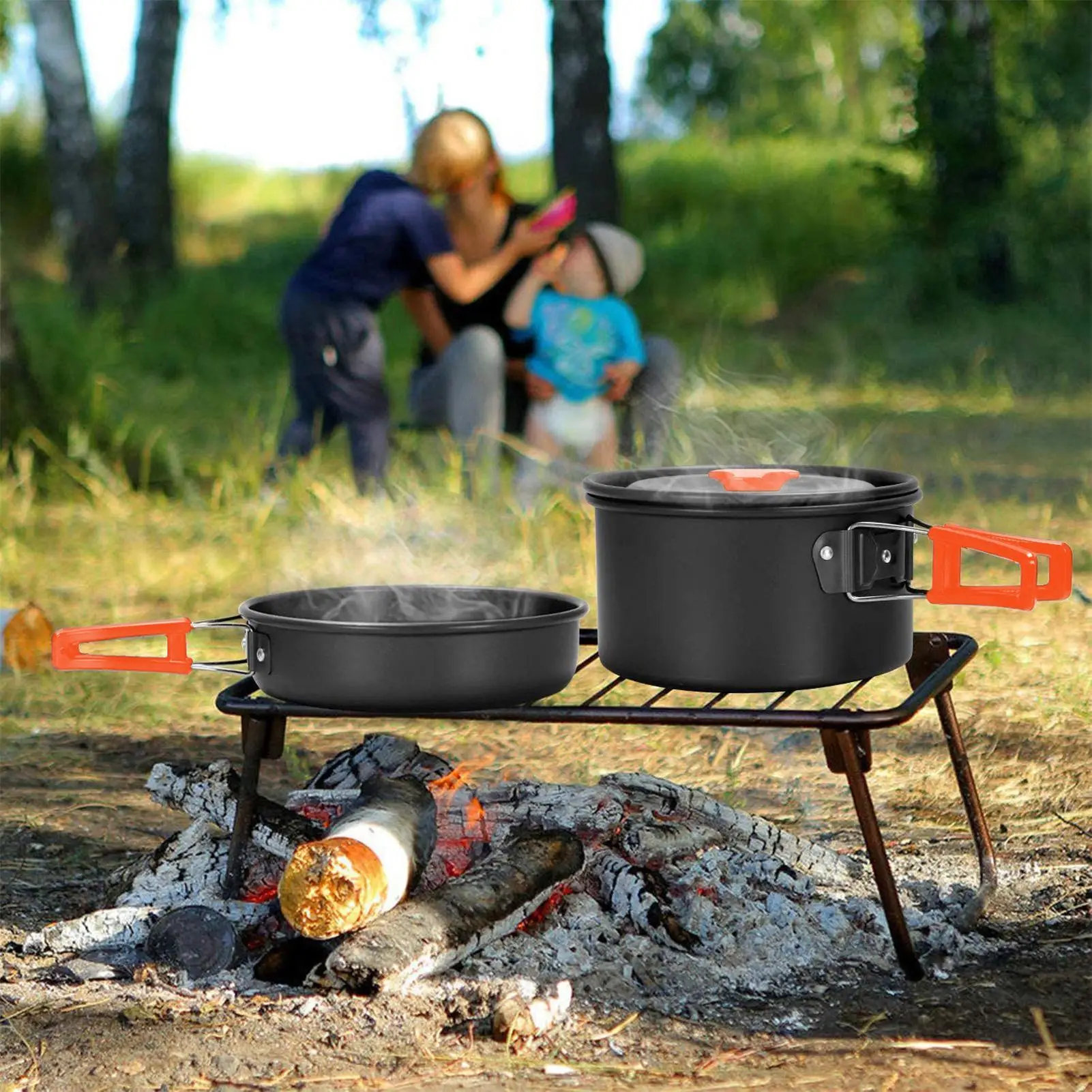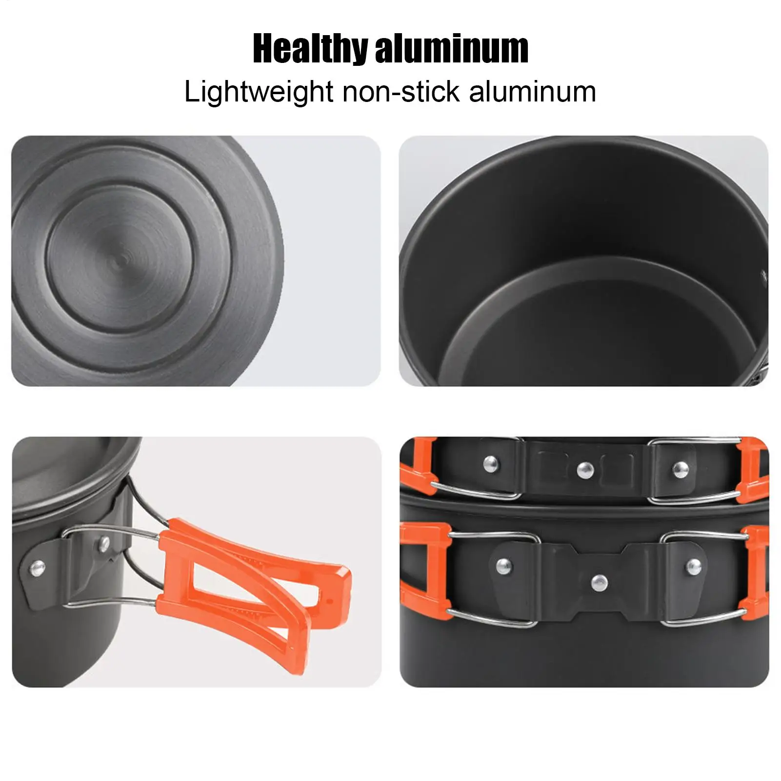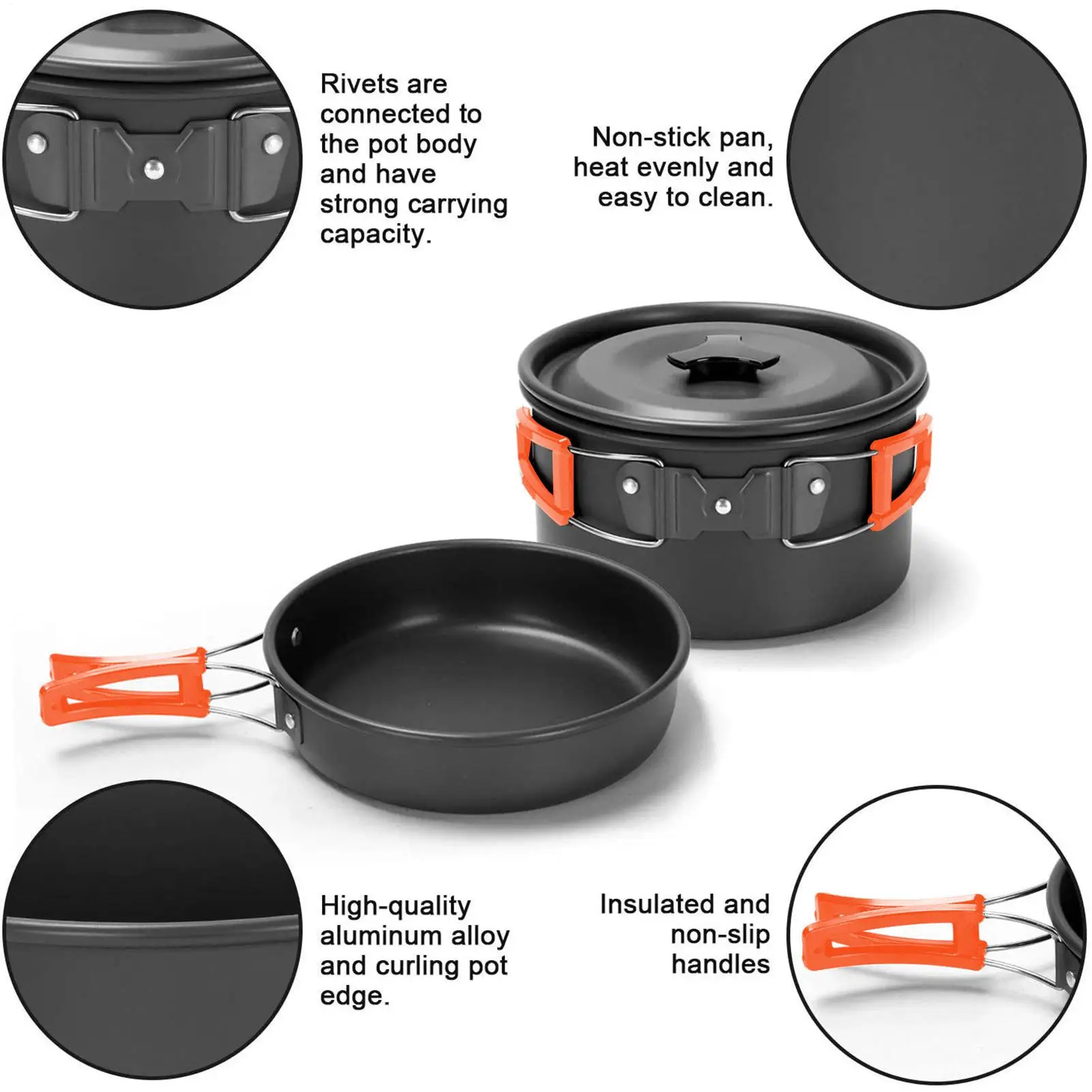 2.Functional Kit: This camping cookware set assures full cooking coverage with a kettle, tableware, fry pan, and pot for versatile outdoor meal preparation needs