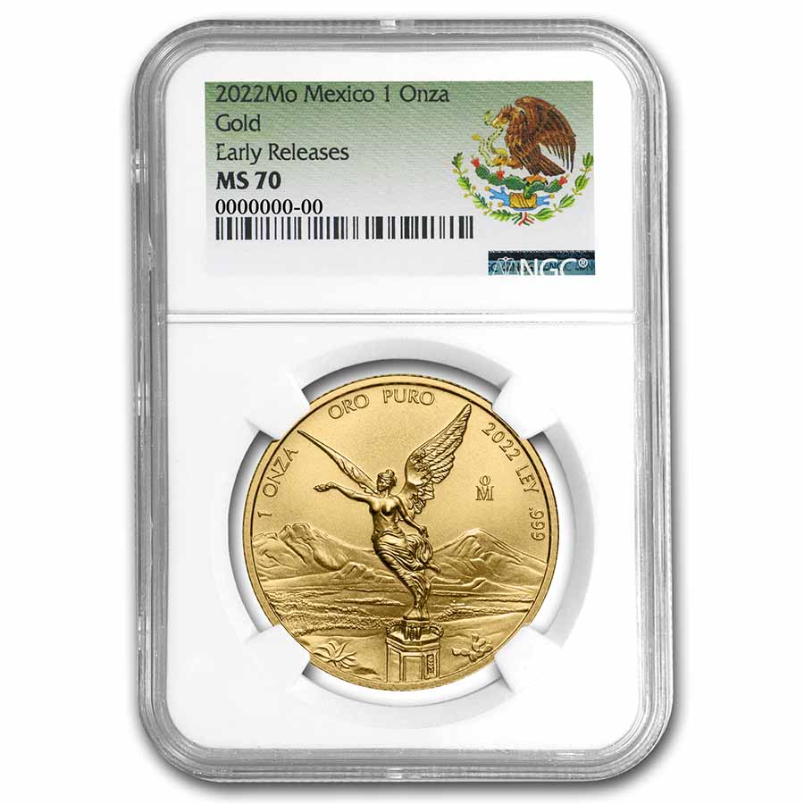 Mexican Gold LibertadsThe highly sought after Gold Libertads were initially struck in 1 oz Gold in a Brilliant Uncirculated finish in 1981. The design on the coins minted in 1981 and 1991-1994 was based on the historical Centenario coin that commemorated 100 years of Mexico's independence from Spain. The Gold Libertad that was struck in 2000 showcased a new design that included the historical coat of arms surrounding the coat of arms of Mexico. These Gold bullion coins are famous for their low mintages that make it more difficult to come across backdated coins, therefore adding collectibility to the series. There are even fewer coins available in this perfect MS-70 grade, certified by NGC.