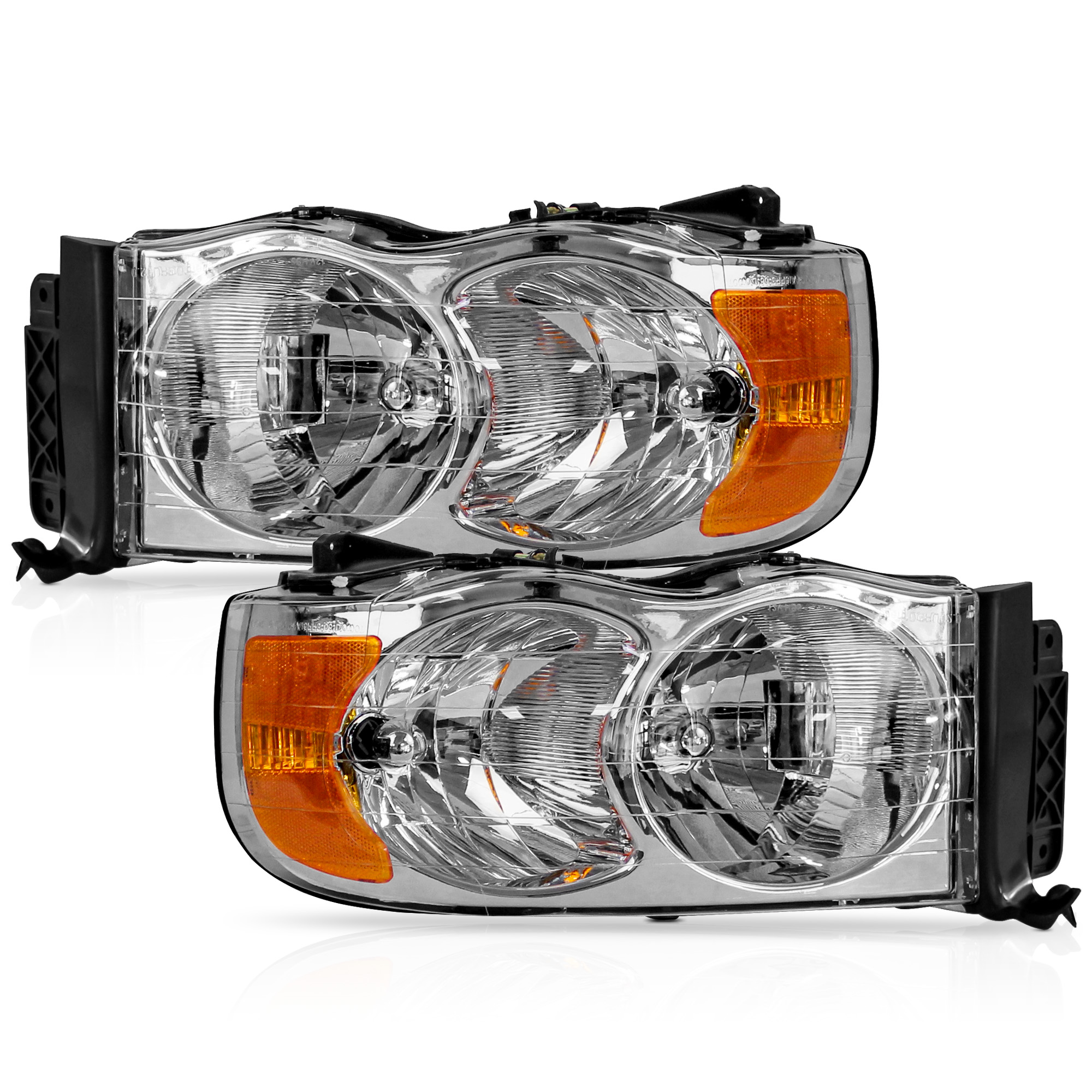 For 2002-2005 Dodge Ram 1500 2500 3500 Chrome Housing Amber Corner Headlights