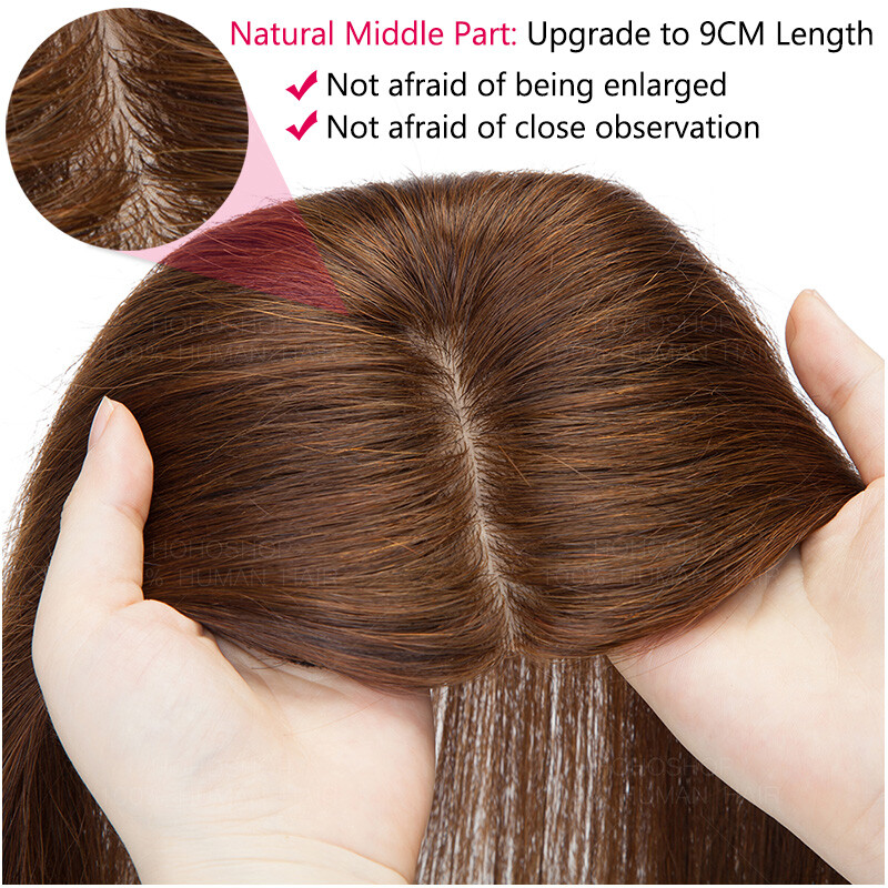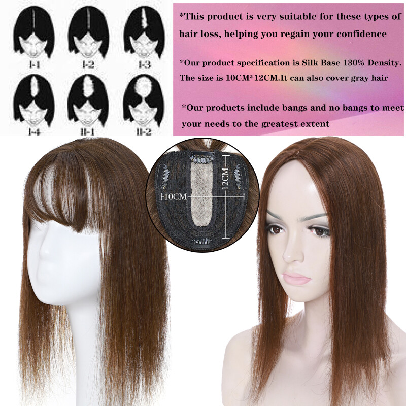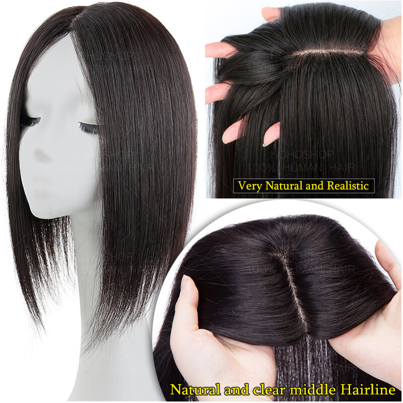 7a Clip in Top Wig REAL Human Hair Topper Toupee Piece Silk Base Women Hairpiece