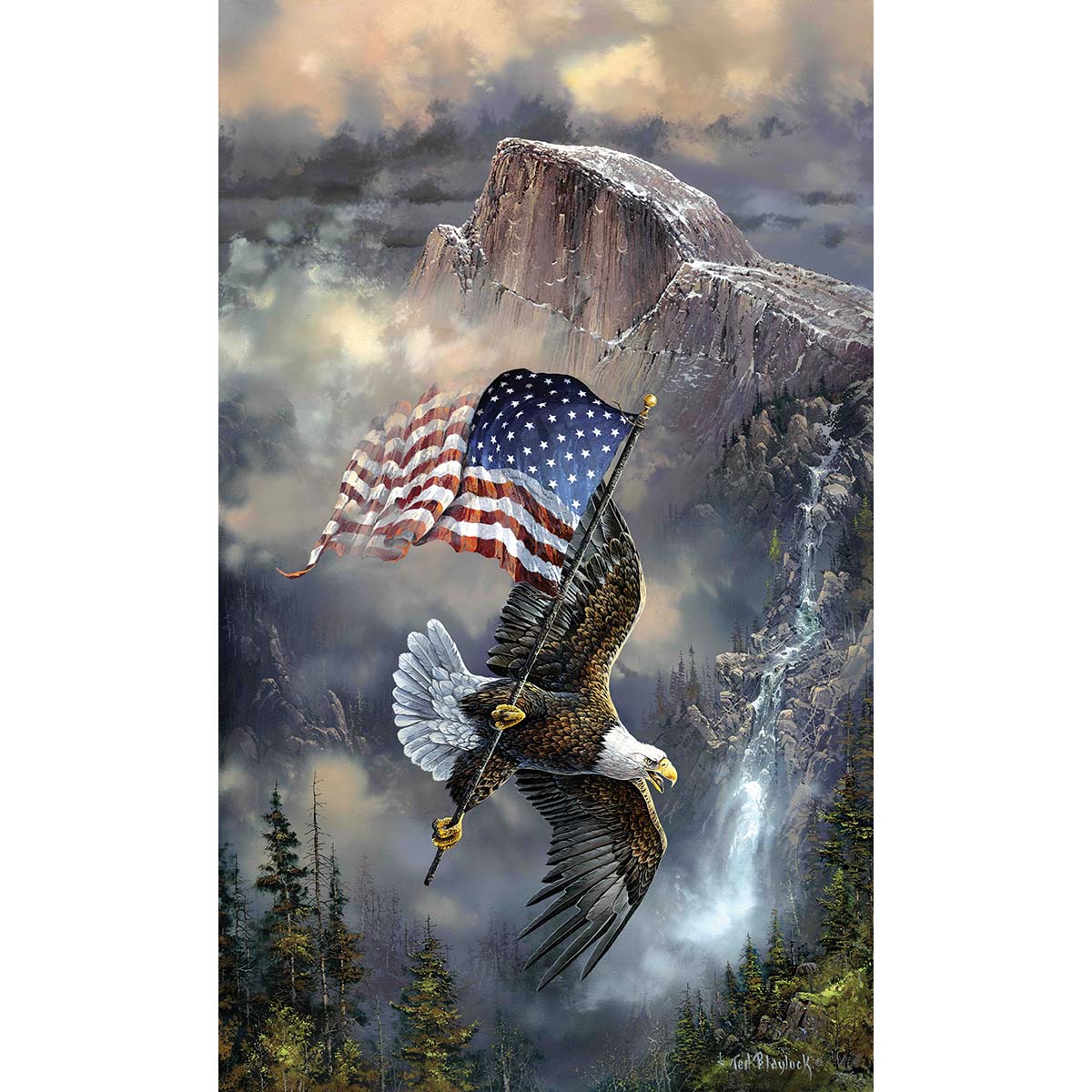 This patriotic diamond painting design features a stunning image of a bald eagle soaring through a rocky landscape, proudly holding an American flag in its talons. The majestic landscape serves as a striking backdrop to this powerful image of freedom. Fun and easy diamond paintings are created by arranging sparkling gems on a pre-printed canvas, resulting in eye-catching wall art with a dazzling sparkle. Diamond painting kit includes full-coverage printed canvas, square diamond art gems, tray, stylus, wax, and instructions. 28 x 47" (71 x 119cm). • This kit includes full-coverage printed canvas, square diamond art gems, tray, stylus, wax, and instructions. • This diamond painting design features a bald eagle carrying an American flag through a mountain valley filled with waterfalls and evergreen trees. • Finished design measures 28 x 47" (71 x 119cm). • Frame is not included.