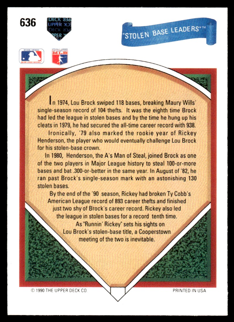 | 1991 Upper Deck Lou Brock/Rickey Henderson Oakland Athletics/St. Louis Cardinals | ||||||||||||||||