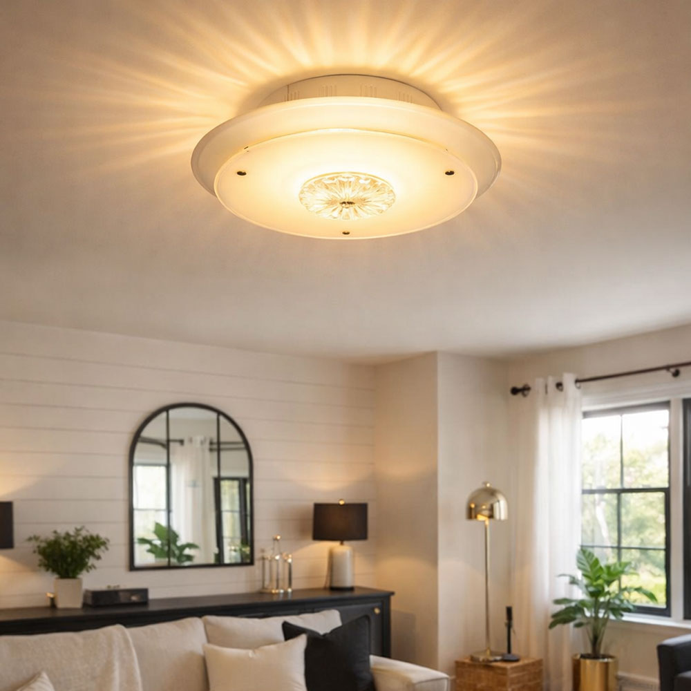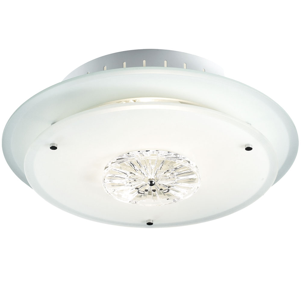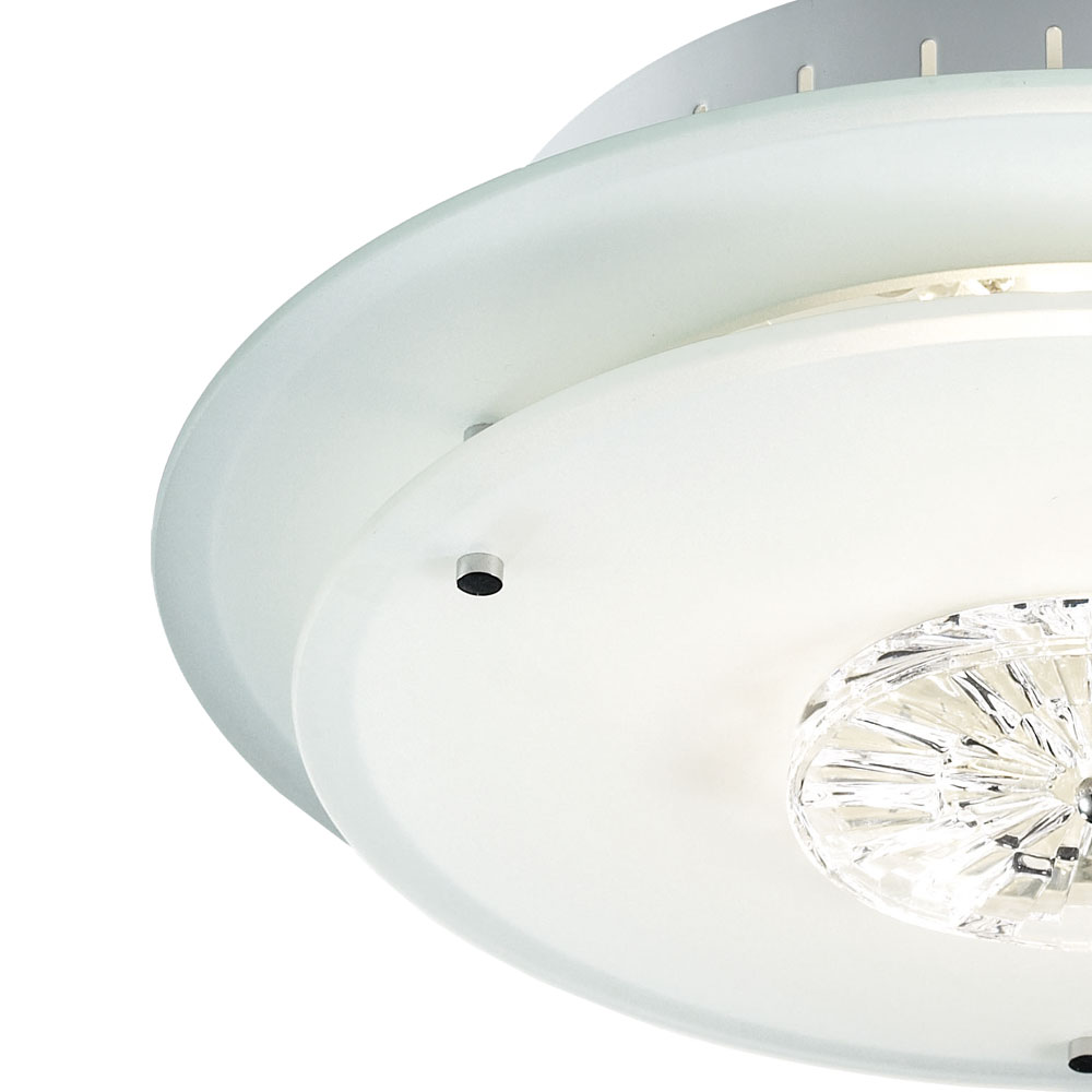 • Type de lumière : plafonnier • Matériau : métal, chrome, cristal/verre • Abat-jour : satiné, transparent • Classe de protection : IP20 • Diamètre x hauteur en cm : 33 x 8,5