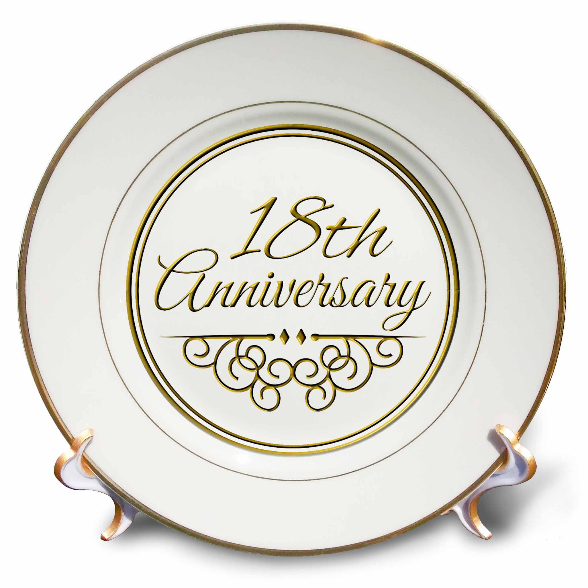 Honor a special milestone in your life or a loved one’s with this elegant 3dRose 18th Wedding Anniversary Porcelain Plate. Featuring 18th gold text to celebrate years of love and commitment, this 8-inch decorative plate makes a stunning keepsake for couples celebrating their milestone anniversary.
