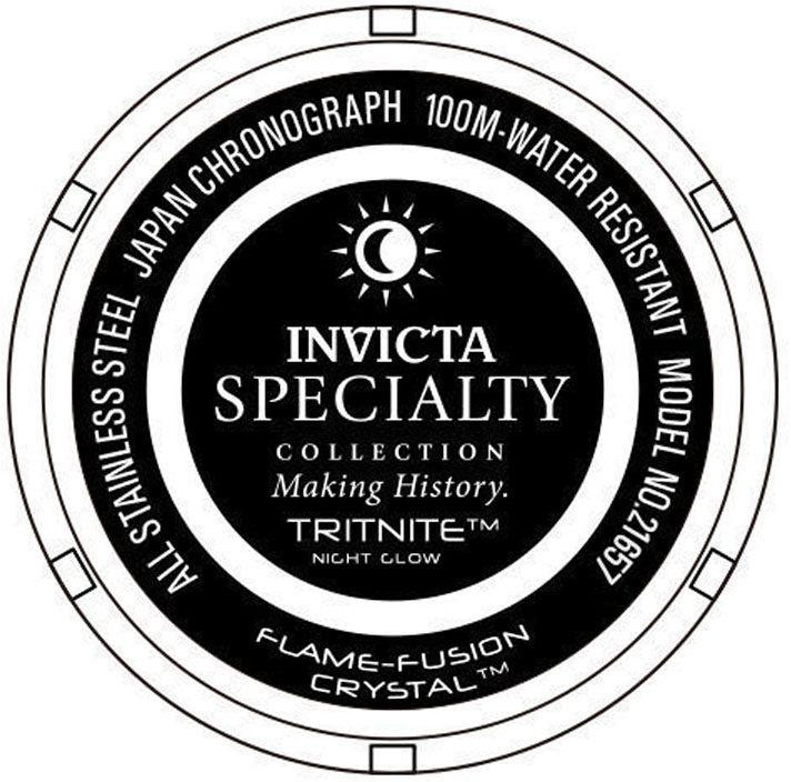 Gleaming in a high polished stainless steel design, this Specialty timepiece from Invicta makes for a fantastic accessory that will dress up any man's wardrobe. The silver-tone, multi-function dial with classic Roman numerals combines tradition with modern style in a harmonious balance.