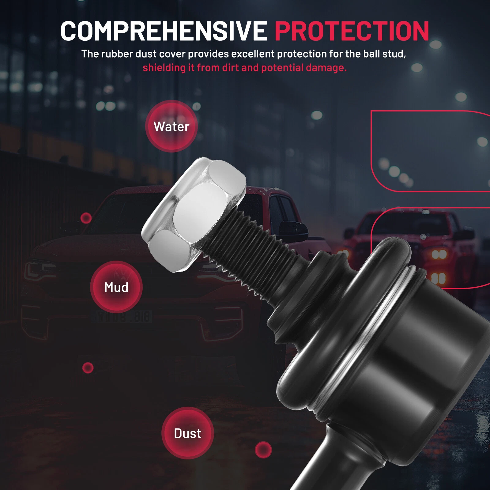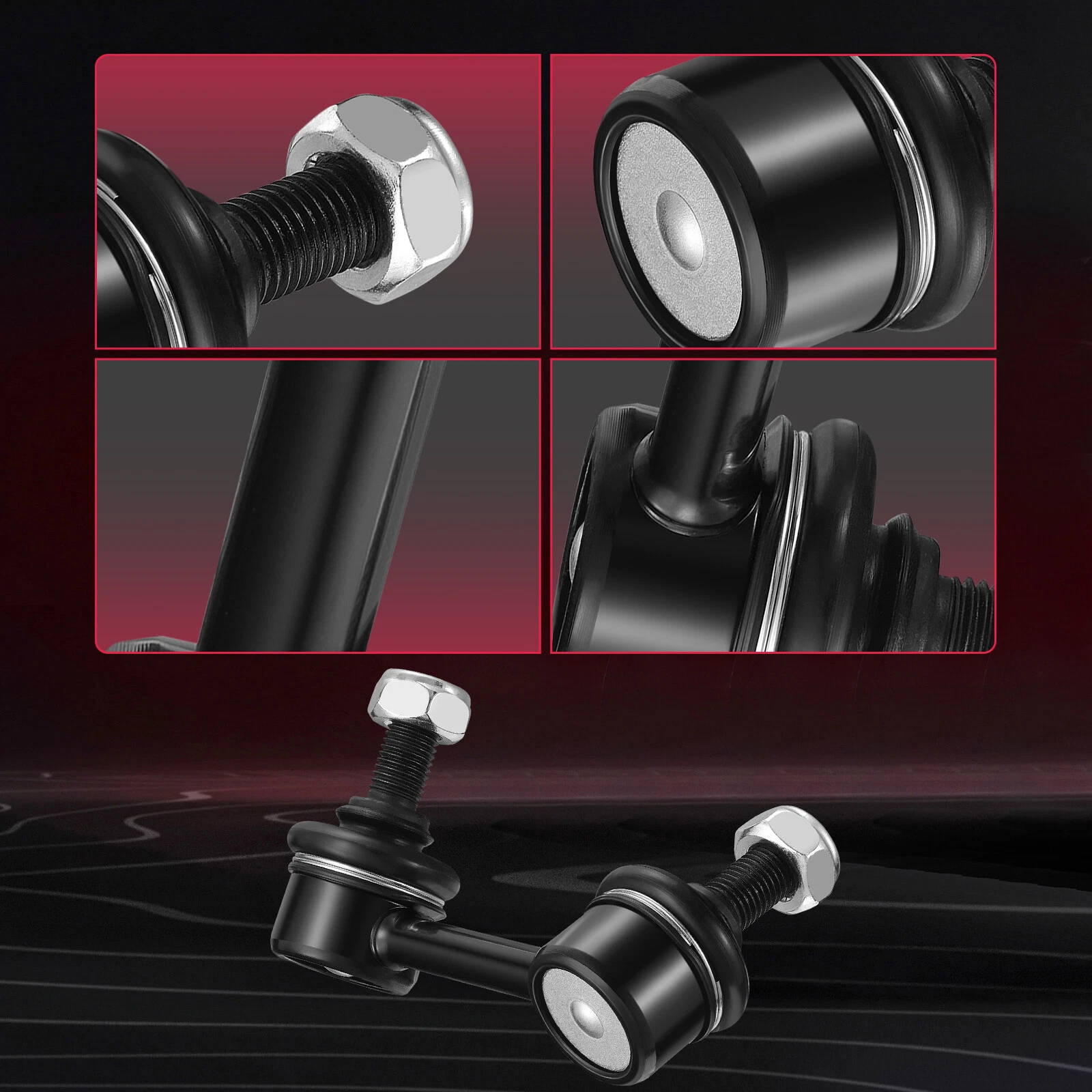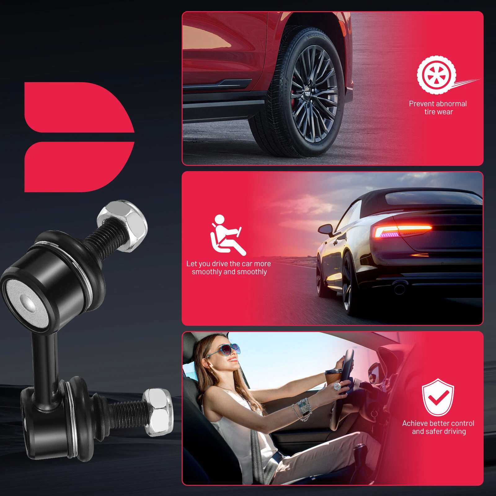 【Function】Signs your sway bar links need replacement include clunking sounds during turns and bumps, loose or misaligned steering wheel, poor handling, uneven tire wear, and visible damage in the suspension system. Replace our accessories, can take away the clunking/clicking coming from the suspension you heard from every bumps in the road! Giving you a good driving experience.