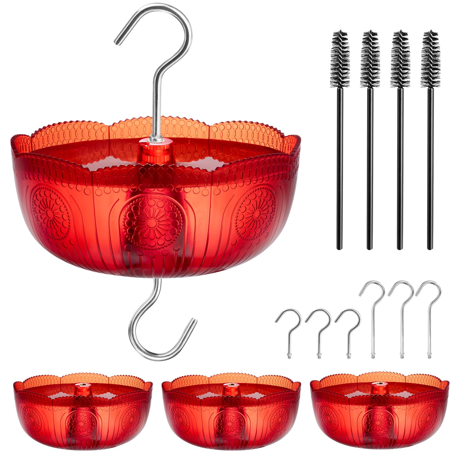 Ant Moat for Hummingbird Feeders, (4 Pack, 6 OZ) Vintage Style Humingbird Red