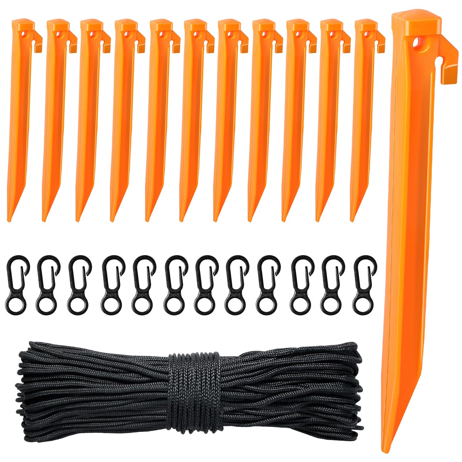 - Versatile Utility for All Your Needs:These plastic tent stakes aren't just for securing various inflatables for Halloween, Christmas, Thanksgiving, and more. They can also anchor canopies, outdoor signage, garden trellises, and much more. One purchase satisfies multiple outdoor demands, making your outdoor space a canvas for creativity and imagination. You will receive 12 pieces of plastic inflatable stakes in red, 1 pieces of 65.5 FT rope, and 12 pieces of hooks.