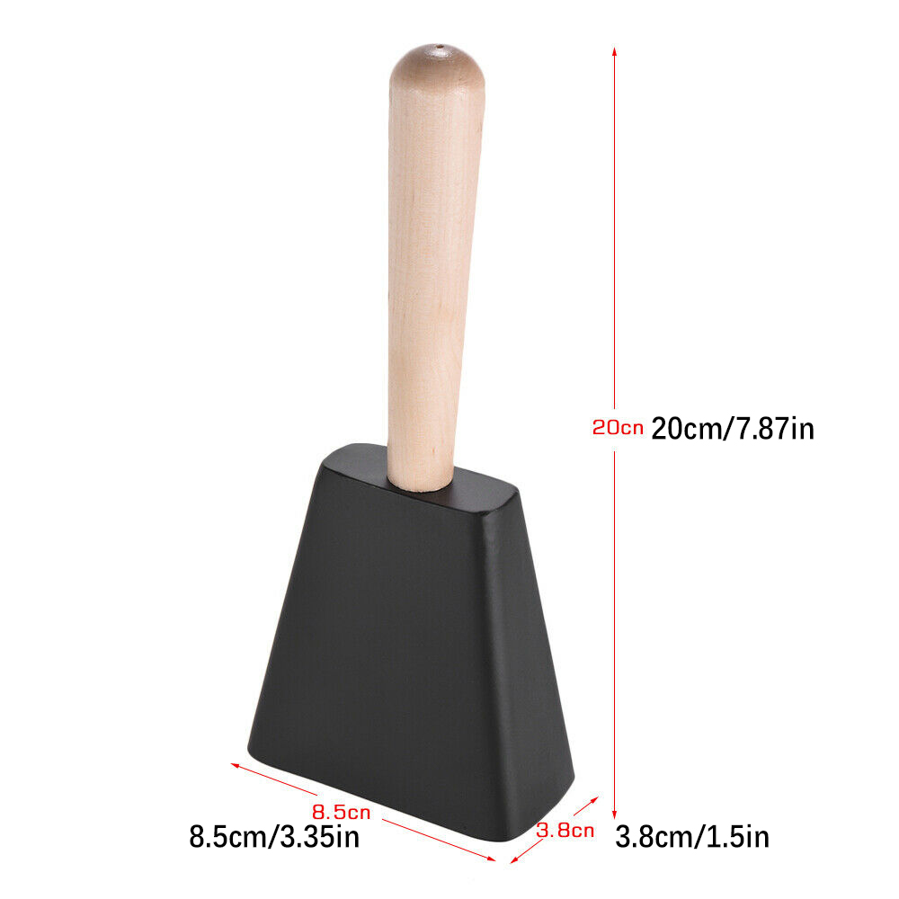Features: Profession cowbell design for bands. Metal material and thickened design, with clear and bright sound. The wooden handle with smooth surface, comfortable to grip. Comes with a plastic mallet for playing the cowbell.