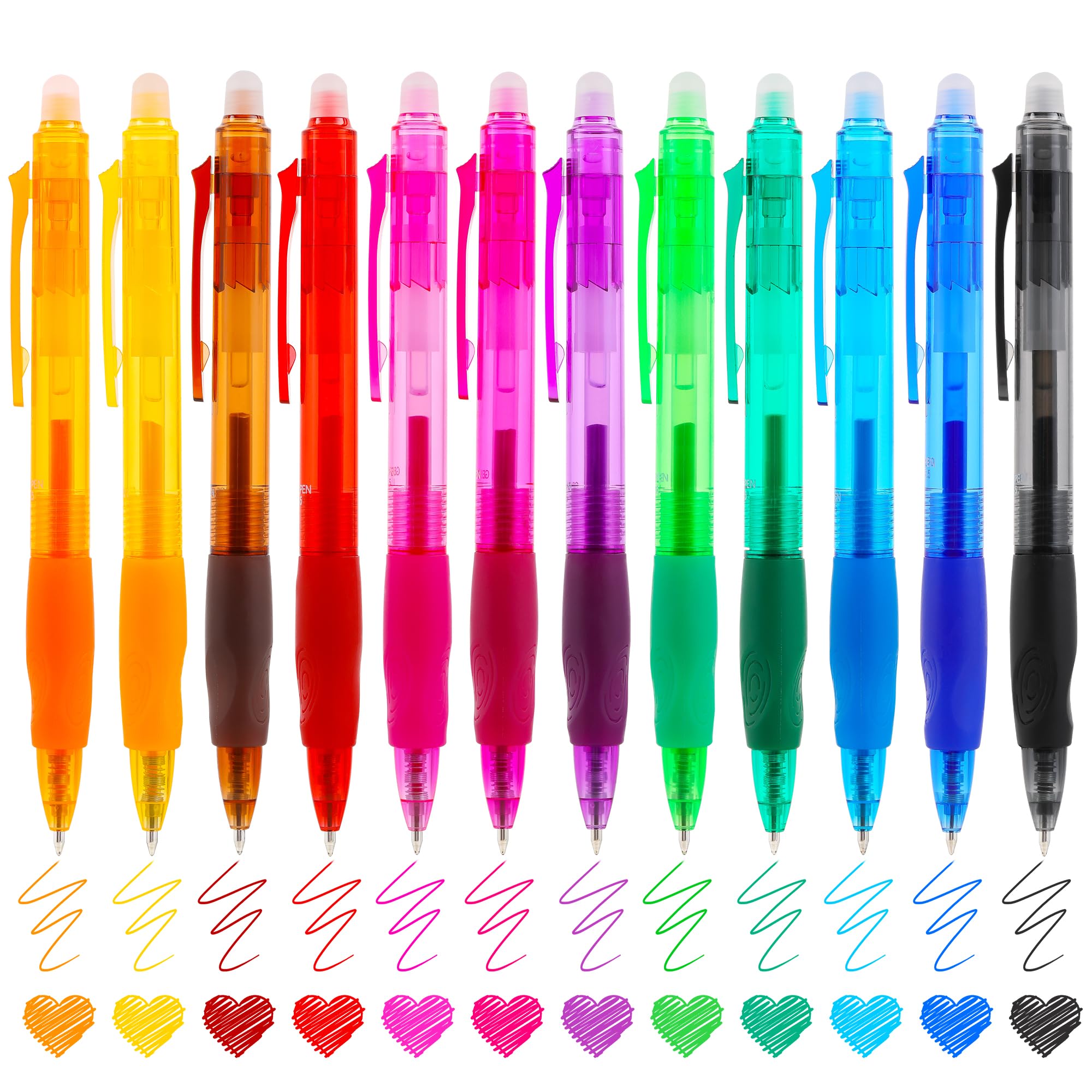 【0.5mm Color Erasable Pen】: Smooth writing gel ink, rolling-ball tip 0.5mm, Nontoxic ink, acid-free, non-bleeding. Great for note-taking, homework, editing, or tackling work in the office.Keep your paper or books neat and clean. Great gel pens for coloring, writing, sketching, drawing, doodling, scrap booking But not recommended for use on legal or official documents.