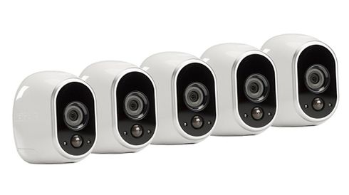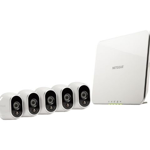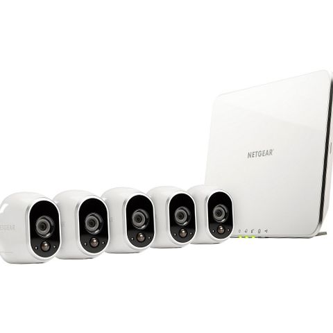 What's in the box:5 HD weatherproof security cameras with night vision.1 smart home base station + power adapter.5 magnetic mounts1 Adjustable camera mount2 window decals20 batteries1 Ethernet cable8 mounting screws
