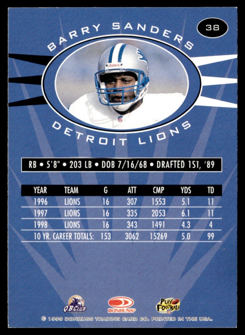 1993 Donruss Preferred QBC Barry Sanders Detroit Lions #38
