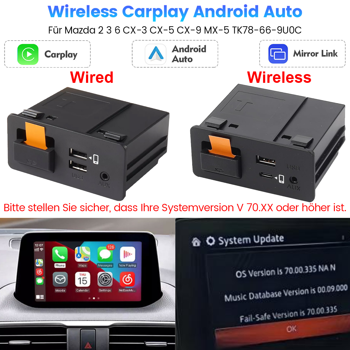 Wenn Ihr Auto kein MZD-Anschlussgerät hat, funktioniert es nicht.