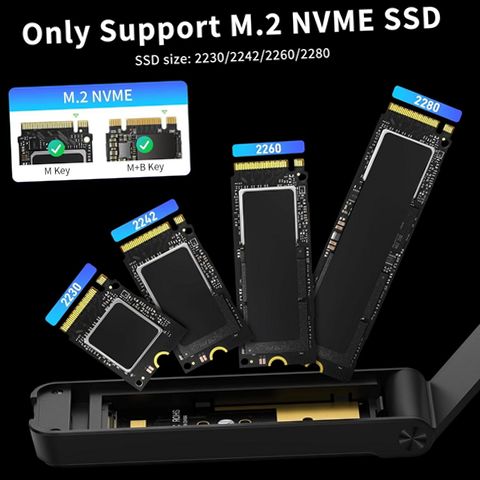 The M.2 NVMe SSD Enclosure is designed to provide fast and reliable external storage solutions for NVMe SSDs with M & M+B key compatibility across multiple sizes including 2230, 2242, 2260, and 2280. Utilizing the USB 3.2 Gen 2 interface, it delivers transfer speeds up to 10Gbps, ensuring efficient data access and backup capabilities. Its innovative sandwich style design allows for tool-free installation, making it easy to insert or remove your SSD without additional equipment. The enclosure supports UASP and TRIM commands to maintain optimal drive performance and longevity. Crafted from a combination of aluminum alloy and ABS materials, it offers excellent heat dissipation to prevent overheating during extended use. The package a USB C to C (A) cable, thermal pad for heat management, rubber components for secure fitting, and a user manual for straightforward setup guidance. This enclosure is ideal for users seeking a portable, durable, and high-performance external SSD solution.