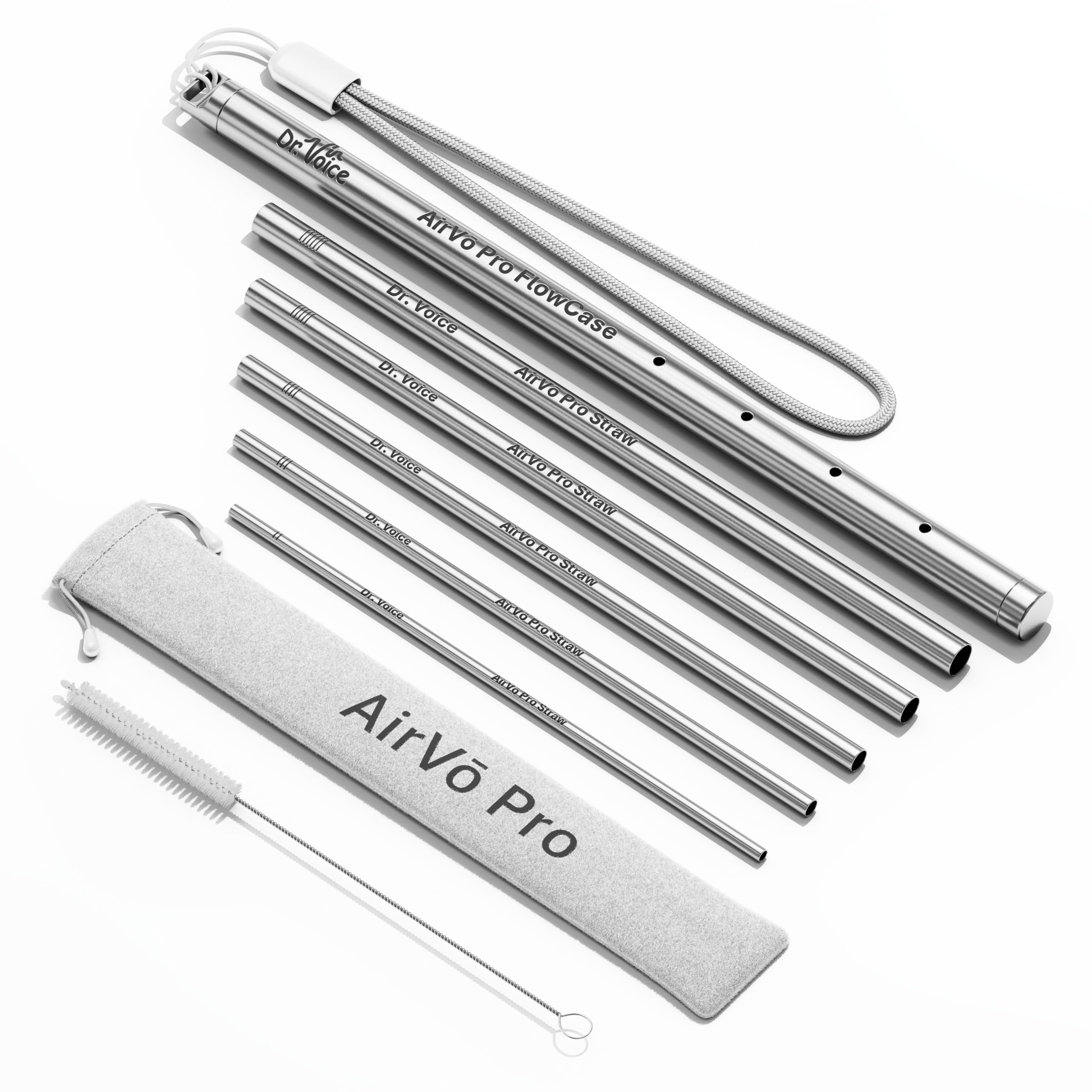 AirVō Pro Singing Straw & Vocal Trainer by LLC is the world’s first all-in-one SOVT (Semi-Occluded Vocal Tract) voice straw training system, engineered for singers, vocal coaches, teachers, and voice therapy. Designed as a better voice vocal trainer for singing, this professional kit functions as both a singing straw pro system and a complete vocal trainer device for daily vocal warmups, performance preparation, and rehabilitation. This singing equipment includes five stainless steel singing straws (2–6 mm), the innovative FlowCase (which also works as an 18 cm voice straw with resistance ports), a cleaning brush, lanyard, velvet pouch, and user manual. Unlike ordinary singing tools, all straws nest inside each other and into the FlowCase, making AirVō Pro compact, travel-ready, and ideal for studio, stage, classroom, or clinic use—no loose parts, no clutter. More than a standard vocal trainer, the FlowCase doubles as a sound therapy and sound healing tool. It can be submerged for water resistance training (Lax Vox–style) or used dry with precision resistance holes. Together, the straws and FlowCase provide 11 distinct resistance levels, offering far more flexibility than typical voice straws—from gentle vocal warmups to intensive breath building for musicians and advanced vocal conditioning. Clinically informed and performance-driven, AirVō Pro supports healthy phonation, reduced vocal strain, improved breath control, and resonance training. The built-in biofeedback helps users feel airflow beneath the nose, reinforcing efficient voice production and supporting vocal cord care and recovery. Durable, hygienic, and scientifically grounded, this kit is trusted by singers, educators, and clinicians worldwide. Whether you’re refining daily vocal warmups, equipping a studio or classroom, or choosing a cool gift for vocal performance and voice training, AirVō Pro stands out as a premium singing straw and vocal trainer. Designed to support a better voice through efficient airflow, resonance, and sound therapy, it’s a practical, high-quality singing gift for anyone serious about healthy voice use.