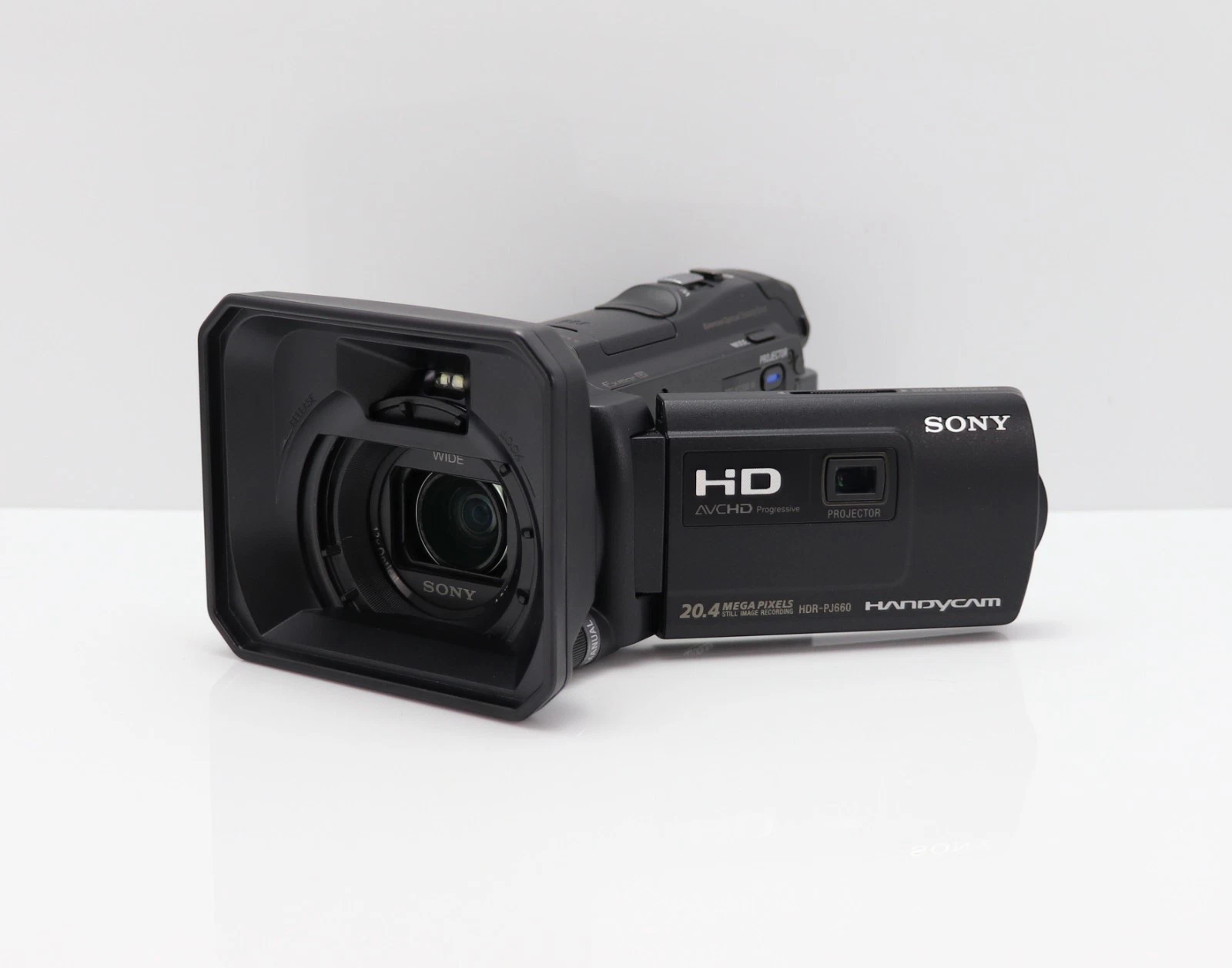 It is high in features such as its balanced optical SteadyShot, 20.4 MP, colour viewfinder eyepiece, microphone input and a built-in projector. The PJ660E has a built-in 64GB flash memory and is also compatible with the Memory Stick HG Duo / SDXC Card formats. It is compact, looks great and produces superb results.
