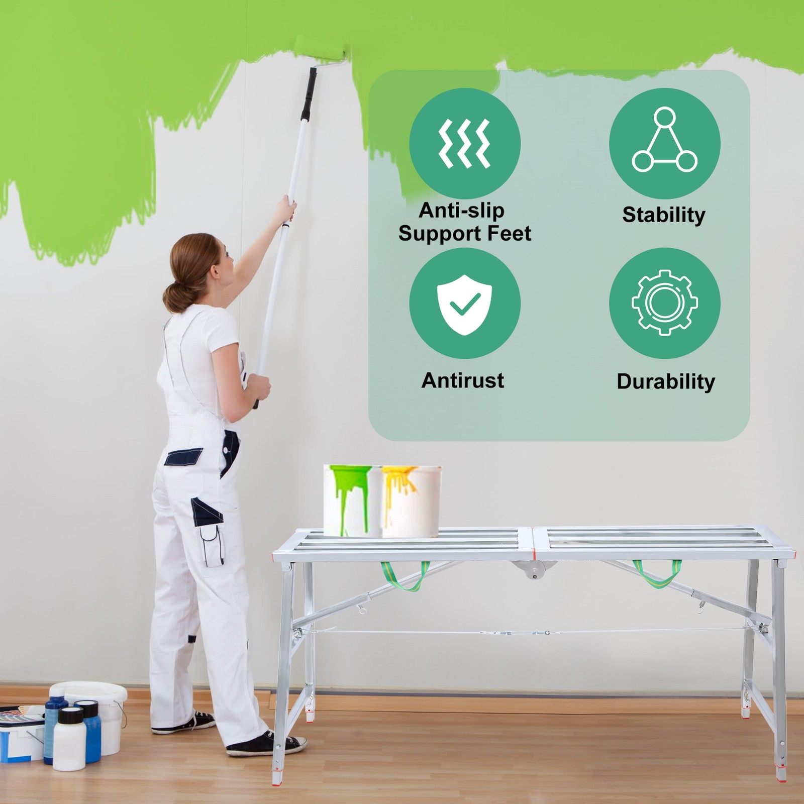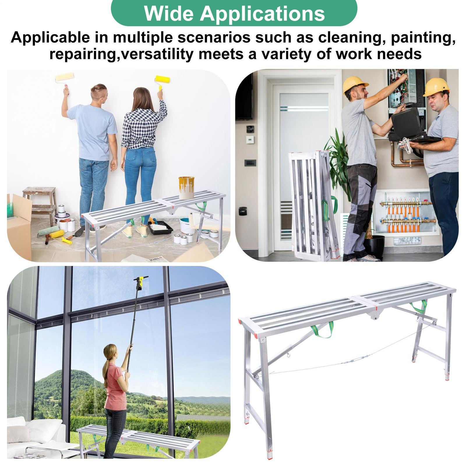 Space-Saving Design: Effortlessly foldable and ultra-lightweight, this scaffolding ladder is a breeze to store and ideal for transport in your car, ensuring convenience wherever you go.