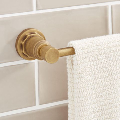 Signature Hardware 948292-24 Grey field 24" Towel Bar Featuring sleek details, the Grey field Towel Bar is perfect for a contemporary bathroom design. Easy to install, this product will quickly change the appearance of your bathroom. Mounting hardware is included for easy installation. Signature Hardware 948292-24 Features: Constructed of metal Concealed mounting hardware included Includes all necessary hardware for easy installation Signature Hardware 948292-24 Specifications: Overall Width: 26" (from left to right)Center to Center Width: 24" (center to center of mounting posts)Depth: 3-3/8" (from front to back) Towel Bars Aged Brass.