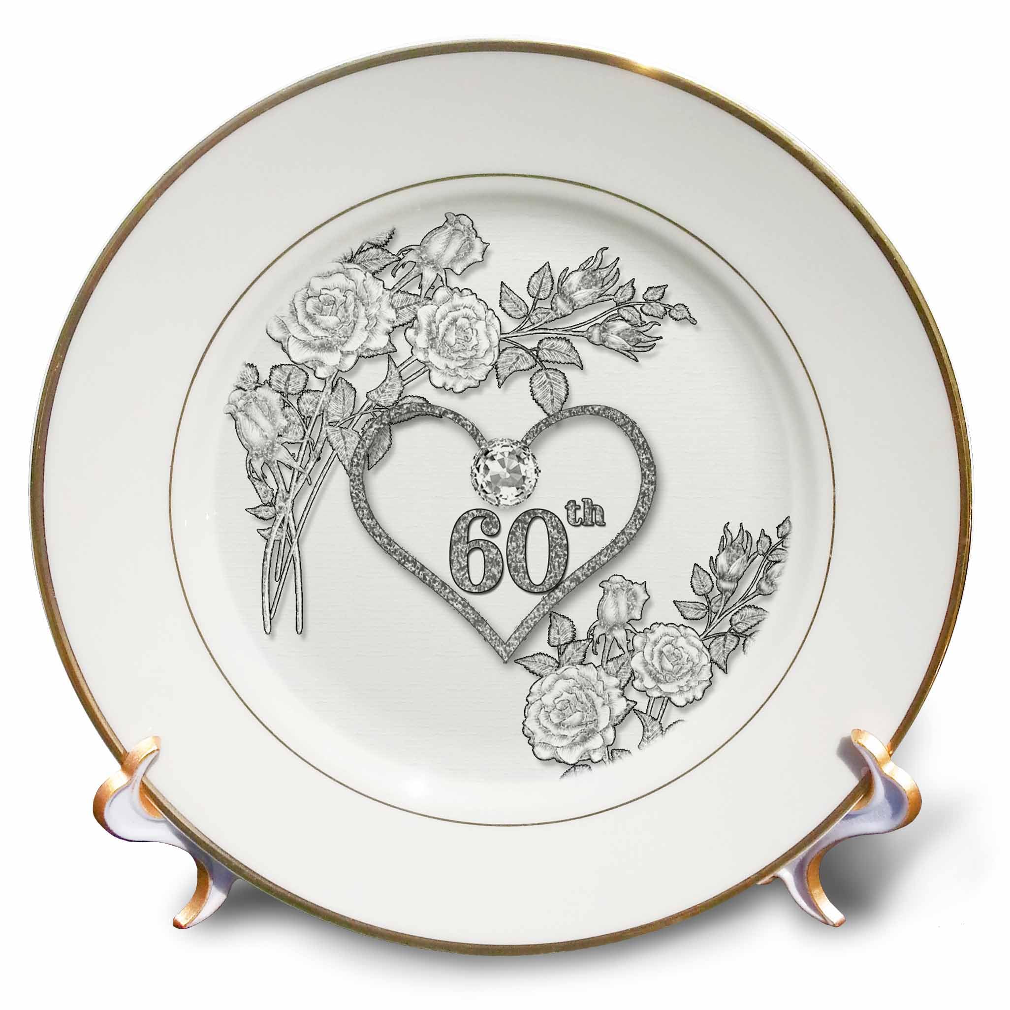 3dRose 60Th Diamond Wedding Anniversary Word Art withHeart On LinenWhite Plate 8