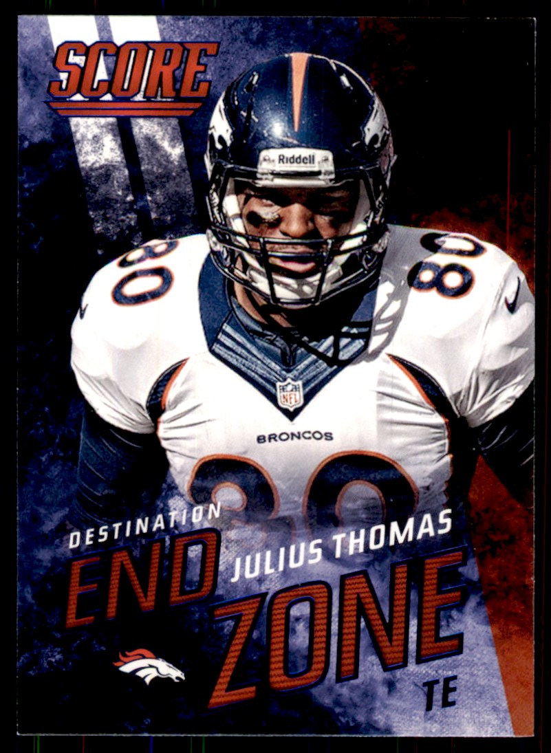 | Description: | Julius Thomas | | Category: | Football | | Year: | 2014 | | Product: | Score | | Team: | Football Cards | | Card Number: | DE12 | | Dimensions: | 3½" x 2½" |