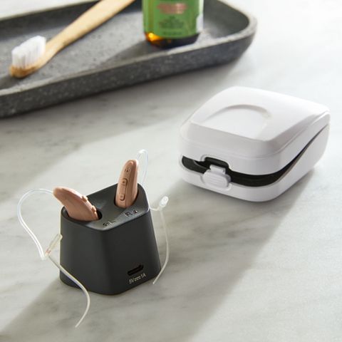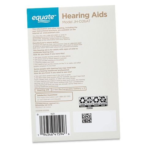 The Equate Rechargeable Over-the-Counter Hearing Aids are designed to improve hearing clarity for individuals with mild to moderate hearing loss. These behind-the-ear (BTE) devices incorporate advanced digital noise reduction technology that effectively reduces ambient sounds, allowing users to focus on conversations and important audio cues. With four preset environment modes Normal, Outdoor, Restaurant, and Music users can easily switch settings to optimize hearing performance based on their surroundings. The ergonomic design ensures a lightweight and comfortable fit suitable for extended daily use while maintaining a discreet appearance. The rechargeable battery system utilizes a Type-C charging cable, achieving a full charge in approximately two hours and providing more than 20 hours of continuous use per charge. Adjustable volume levels across six settings allow personalized sound control for each ear. The package includes one pair of hearing aids, a compact charging base for convenient recharging, and multiple ear domes to ensure a secure and customized fit. These hearing aids require no prescription and are simple to operate, making them ideal for first-time users seeking reliable hearing assistance.