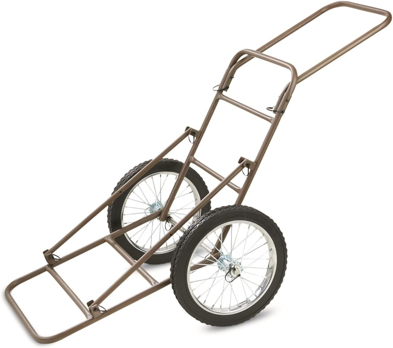 For easier transport of downed game, this is how we roll...with the Guide Gear® 500-lb. Deer Cart. Perfectly balanced design centers the weight over the axle to make hauling your trophy buck a breeze. Puncture-proof, 16" solid-rubber wheels roll easily over downed trees, shallow streams, large roots, and other tough terrain. Plus, its steel frame is incredibly strong and features a big 500-lb. weight capacity.