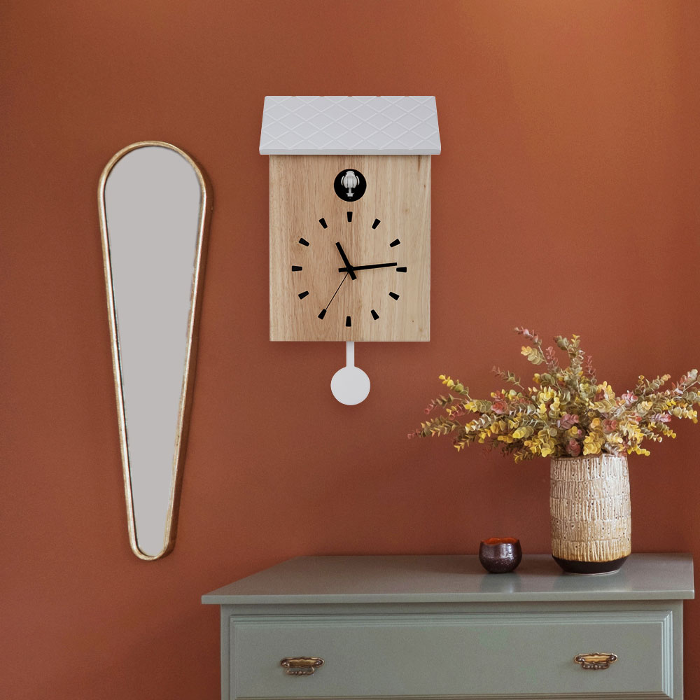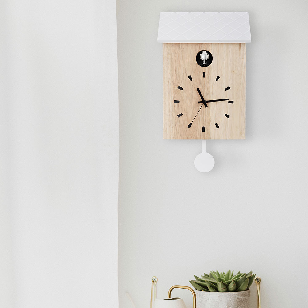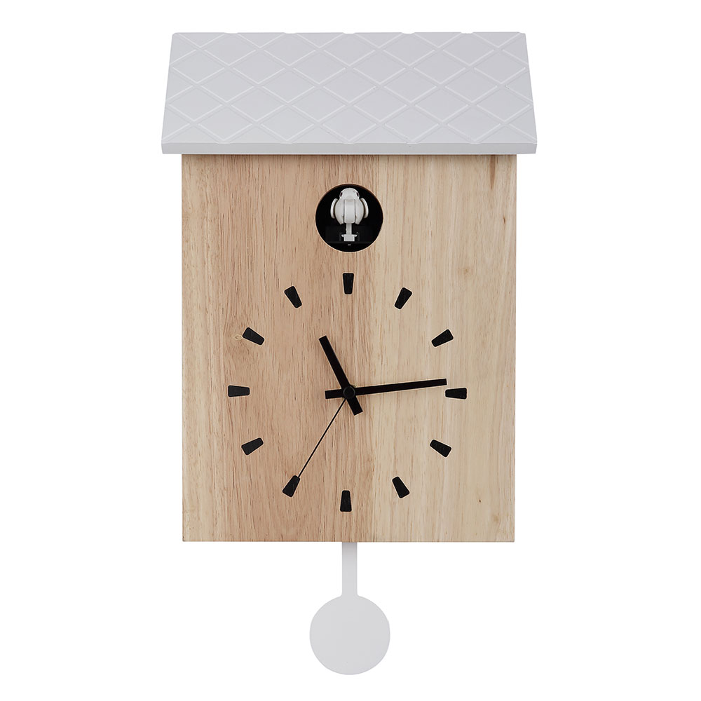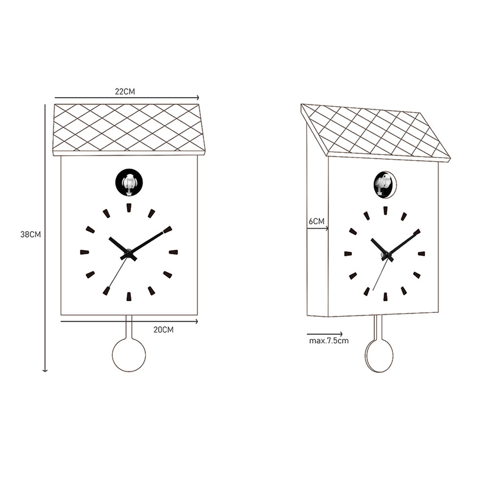 Matériel: bois, braun , blanc blancAvec fonction de coucou et penduleVolume Cuckoo Réglable: Max, Min, Out2 piles LR14 + batterie 1x AA non inclusesWxhxt: 22x38x7,8 cm