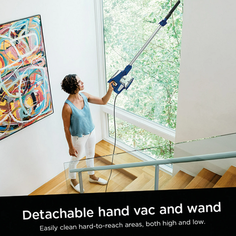 At under 9 lbs., the powerful, ultra-lightweight HV200 Shark Rocket stick vacuum is great on both carpets and hard floors, and easily converts into a handheld vacuum so it can clean your home everywhere, from the floor to the furniture to the ceiling. Despite its light weight and easy maneuverability, pet hair pickup is no problem for this stick vac's impressive nonstop corded power. The fingertip controls on the hand vac let you instantly adjust suction levels when you switch from vacuuming carpets to hard floors, and back again.