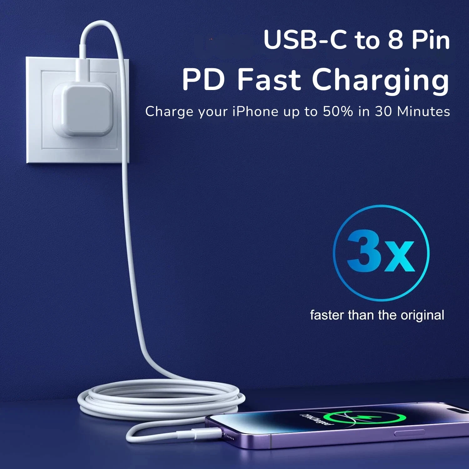 Use this cable with a USB-C PD fast charger to power your iPhone from 0% to 50% in approximately 30 minutes. Perfect for home, office, travel or car use.
