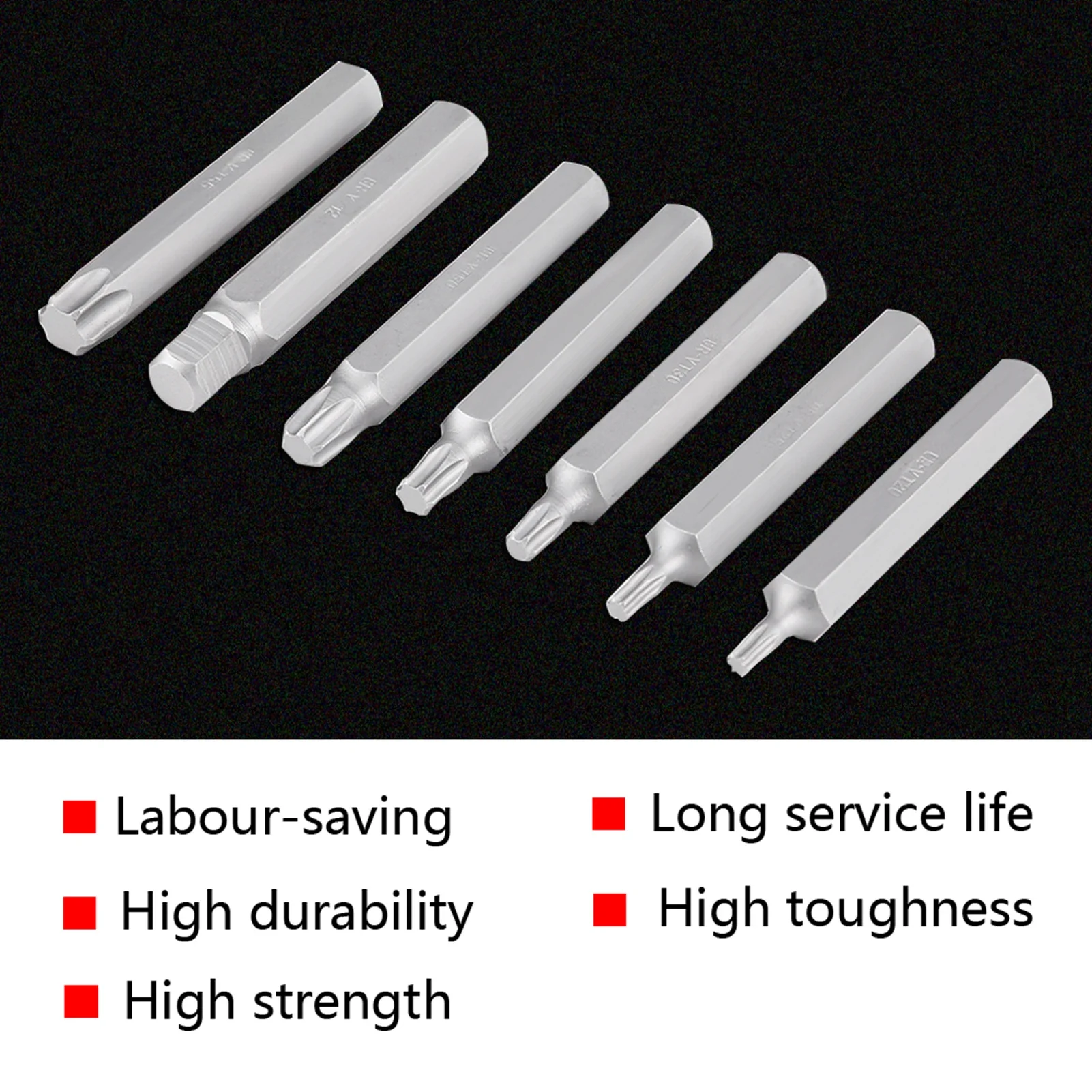 All of the bits, with the exception of a few of the larger bits, share the same 12mm diameter hex base, which allows faster bit changes.