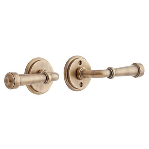 MNG 506 Solid Brass Passage Interior Door Set w/ Sculpted Round Lever Handle - Right Hand - No Backset - Antique Brass