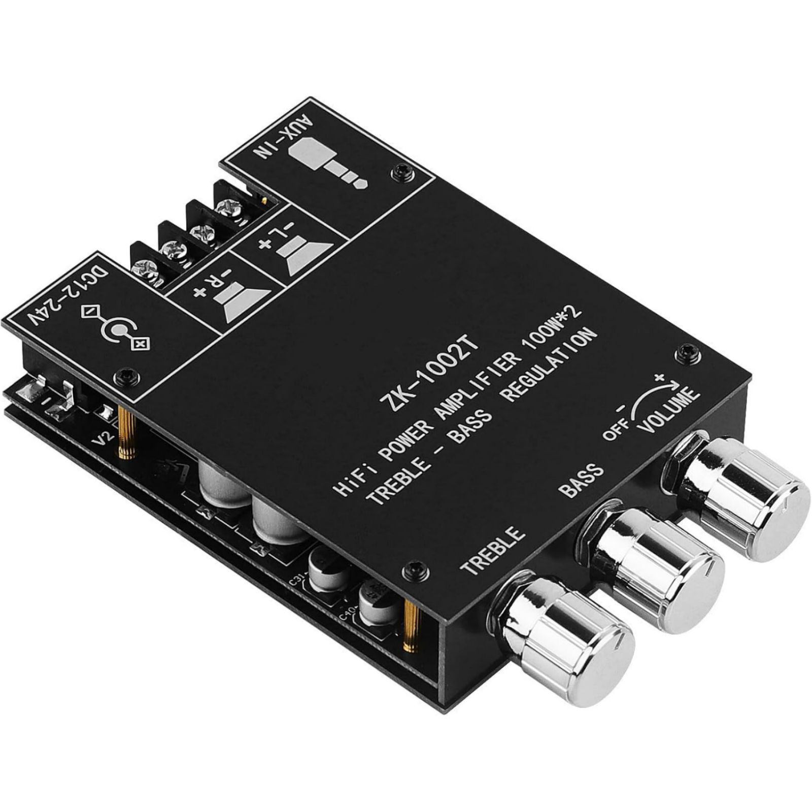 1. Dual TPA3116D2 HIFI Chip: ZK-1002T Bluetooth Amplifier Board Uses The Original Imported TPA3116D2 HIFI Amplifier Chip With Purepath Technology, Which Features Ultra-High Resolution, Ultra-Low Distortion And High Fidelity Sound Quality. It Supports 2.0 Channel Configuration, Including Left And Right Channel Outputs. The Left And Right Channels Each Deliver 100w Of Output Power For An Immersive Sound Experience.