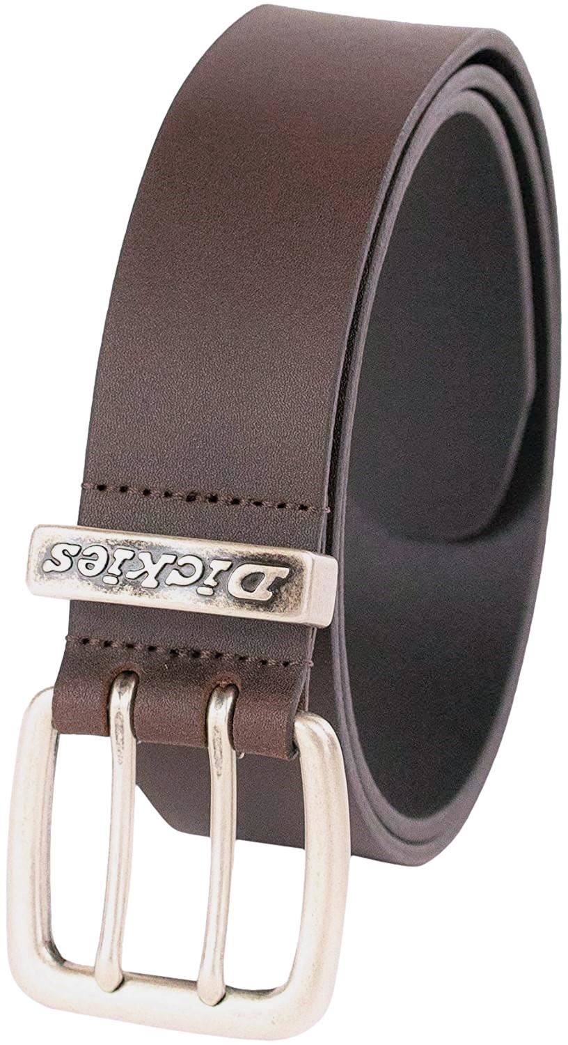 Dickies Men’s Classic Leather Belt is built for both work and casual wear. Crafted from durable genuine leather, this 1.5" (38mm) wide bridle belt features a U-shape tip, cut-edge strap, and a sewn-in metal keeper with the Dickies logo. The antiqued nickel double-prong buckle with double adjustment holes adds rugged style and secure fit. Pair it easily with jeans or khakis for everyday wear. For best fit, order one size up from your pant size (e.g., wear 34, choose 36). Model #11DI02J5. Sizes: S (30–32), M (34–36), L (38–40), XL (42–44).