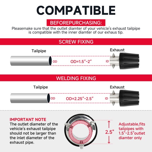 - Easy Installation: No weld needed. No drill needed. Just use a wrench to fix the screw to the appropriate location of tailpipe. different directions ensure a firm installation.