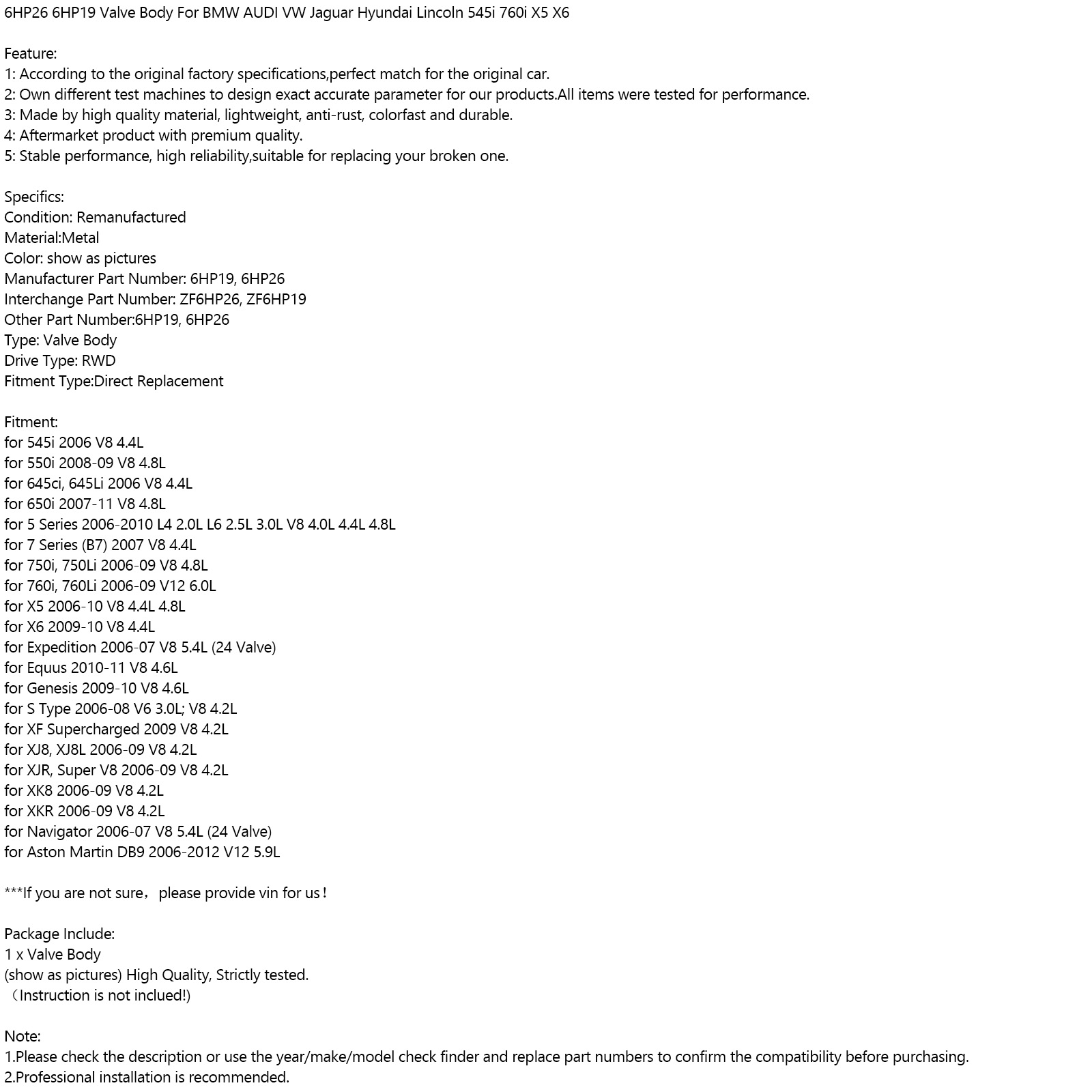 Corps de Valve 6HP26 6HP19, pour BMW AUDI VW Jaguar Hyundai Lincoln 545i 760i X5 X6