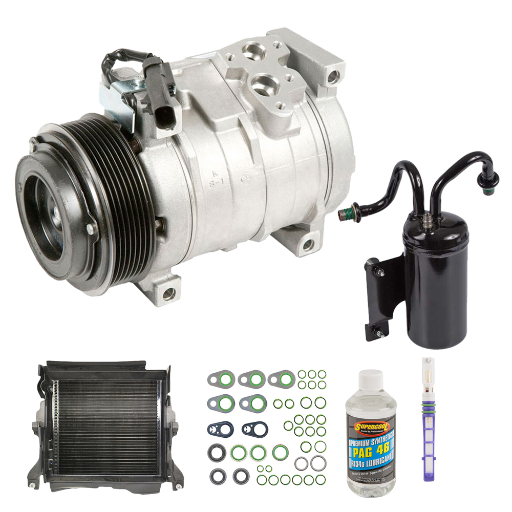 This 6 piece Complete AC Kit includes a brand new AC compressor, condenser, accumulator/drier, expansion device, a bottle of AC compressor oil and a pack of the correct o-rings for your system to prevent leaks. This kit is designed to include all of the right parts to make the repair process easier and save you money.