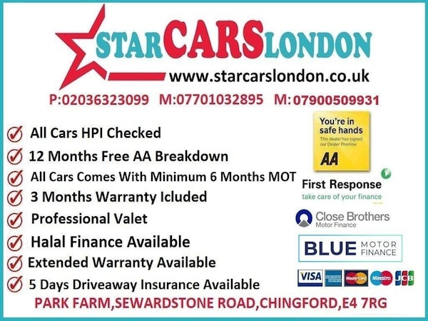 Receive a complimentary 12 months of AA Breakdown Cover with any car purchase. Our commitment to quality includes ensuring that all our cars come with a minimum of 6 months MOT. In the rare instance where a car has less than 6 months MOT at the time of sale, rest assured that we will conduct a fresh MOT unless explicitly stated otherwise in a special note. Your peace of mind is our priority, For More Clear View of the Car Have a Look Video of the car just go to YouTube by just entering the registration number of the car,NEXT MOT IS DUE 30/03/2026, THIS CAR COMES WITH SERVICE HISTORY AND PLENTY OF MOT HISTORY, THIS CAR IS FULLY HPI CLEAR AND IT HAS 2 KEYS AND ALSO COMES WITH OUR 3 MONTHS WARRANTY FOR ADDED PIECE OF MIND,5 DAYS DRIVEAWAY INSURANCE AVAILABLE, EXTENDED WARRANTY AVAILABLE, HOME DELIVERY AVAILABLE, WE DO HALAL FINANCE, CREDIT AND DEBIT CARDS ACCEPTED, FINANCE AVAILABLE, WE ARE OPENS 7 DAYS MONDAY TO SATURDAY 10 TILL 7 SUNDAY 11 TILL 7