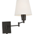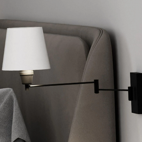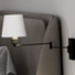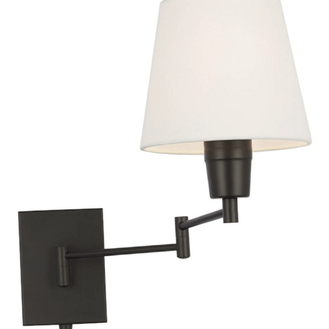 [Enjoy the simple styling and versatile illumination of the Seymour 19? Wall Sconce. A white linen shade rests on an adjustable metal arm that can be swung side to side keeping the light at a comfortable horizontal level without glare. With a classic design that is Ideal for Modern Craftsman and Farmhouse interiors this sconce is an effective reading lamp when flanking both sides of the bed.]
