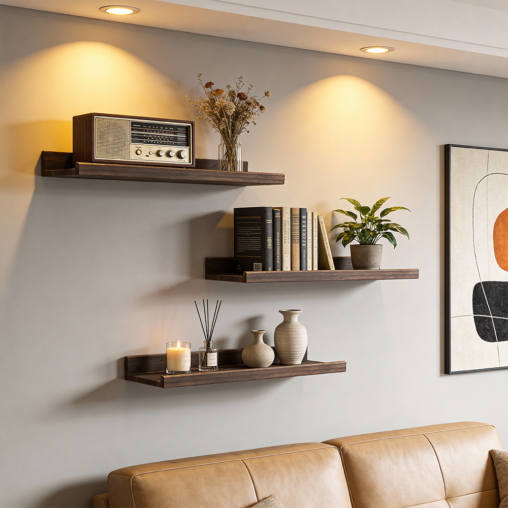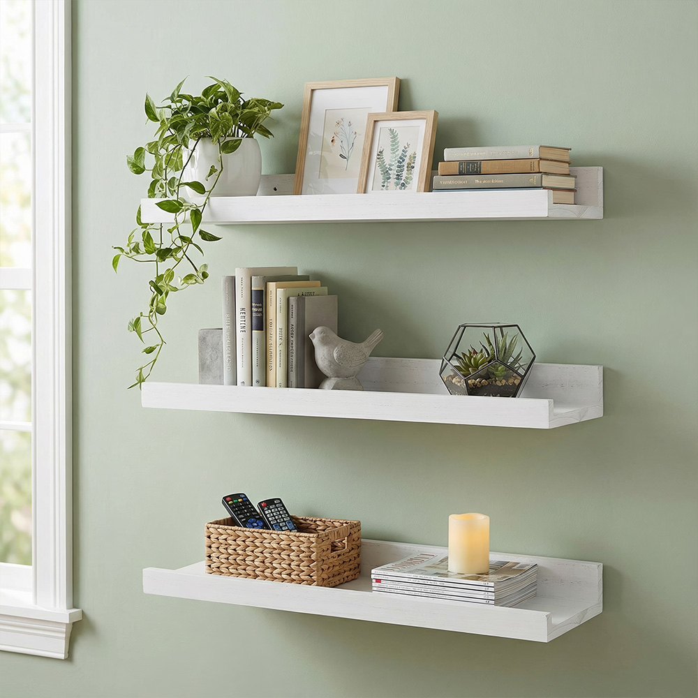 • Enhance your living space with our floating shelve for wall with ledge! These shelves help you create a cozy corner or showcase your favorite décor. Not only do these shelves enhance your room decor, but they also provide a stylish solution to increase storage space effectively.