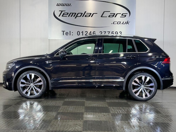 Stunning looking version of this practical SUV finished in timeless metallic blcak. This Volkswagen Tiguan TDI R Line boasts a full service history and a clear vehicle history check, offering you peace of mind. This Four Wheel Drive model is powered by a 2.0 litre diesel engine and meets Euro 6 emissions standards. It comes with a 6 month warranty for added security. Inside, you'll find a 3Zone Electronic Air Conditioning system, Adaptive Cruise Control for effortless journeys, and a Winter Pack including heated seats. The R Line trim also features a Dusk Sensor for automatic headlights and an opening Panoramic Sunroof, all contributing to a comfortable and convenient driving experience. The car is also packed with technology, boasting factory satellite navigation, bluetooth telephone and Apple carplay & Android Auto to keep you connected.With an impressive fuel economy of over 50 mpg, this Tiguan is more economical than many similar vehicles. Its large boot space provides ample room for all your needs, whether for family trips or everyday errands. Furthermore, its low insurance group rating means lower running costs, making it a sensible choice. The vehicle is also equipped for towing with a capacity of 2200 kg and has an MOT valid until October 2026, plus matching Pirelli Scorpion tyres all round, ensuring it is roadworthy and ready for its next owner.Fantastic condition throughout. Looks and drives superb. Please visit to view all our vehicles.